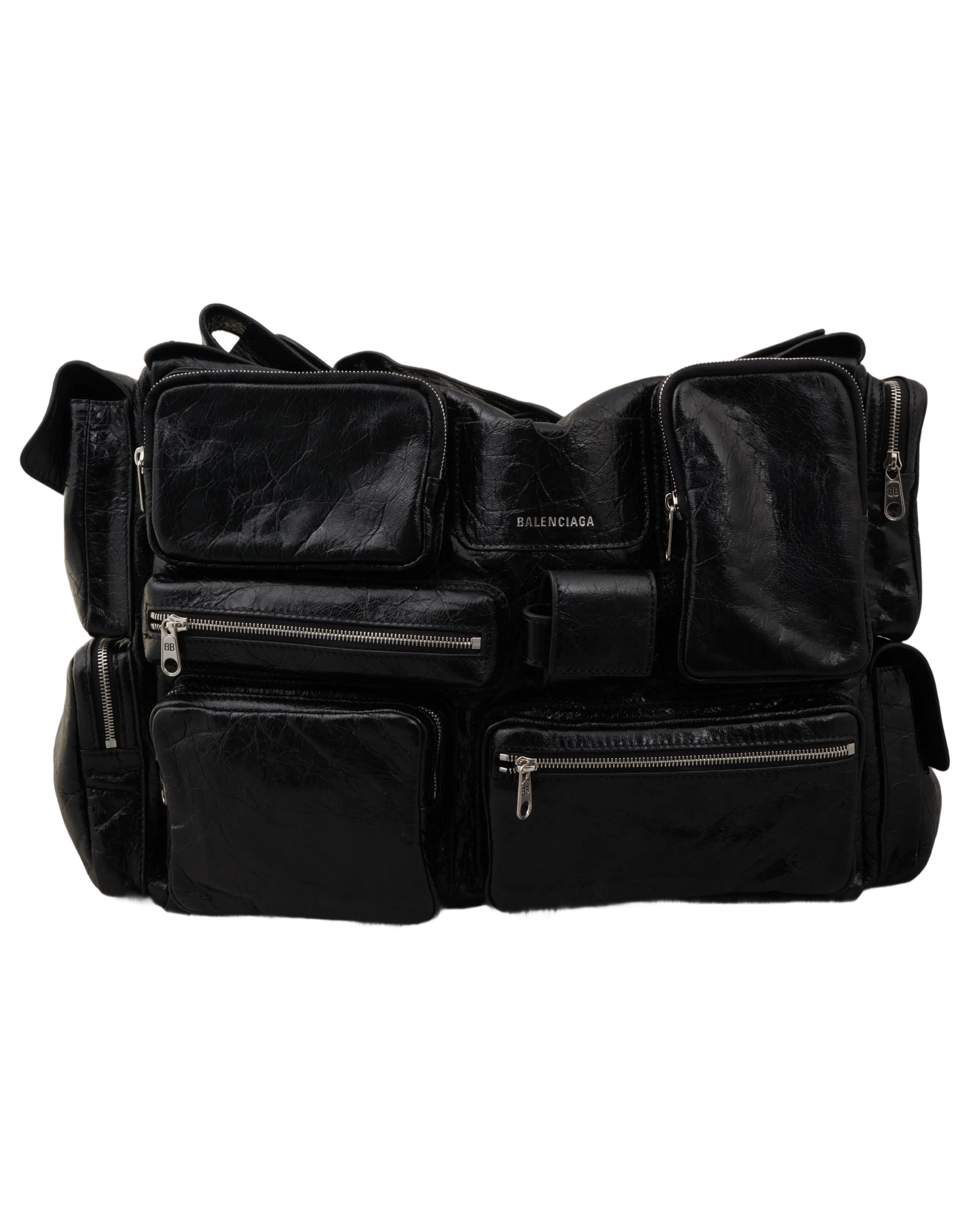 Effortlessly blending utilitarian function with Balenciaga’s avant-garde design ethos, the Superbusy Bag is a statement accessory engineered for modern life. Crafted in Italy from premium textured leather, this bag is defined by its innovative multi-pocket exterior — offering organized storage for essentials like your phone, wallet, cards, and more, all within a sleek, contemporary silhouette.
