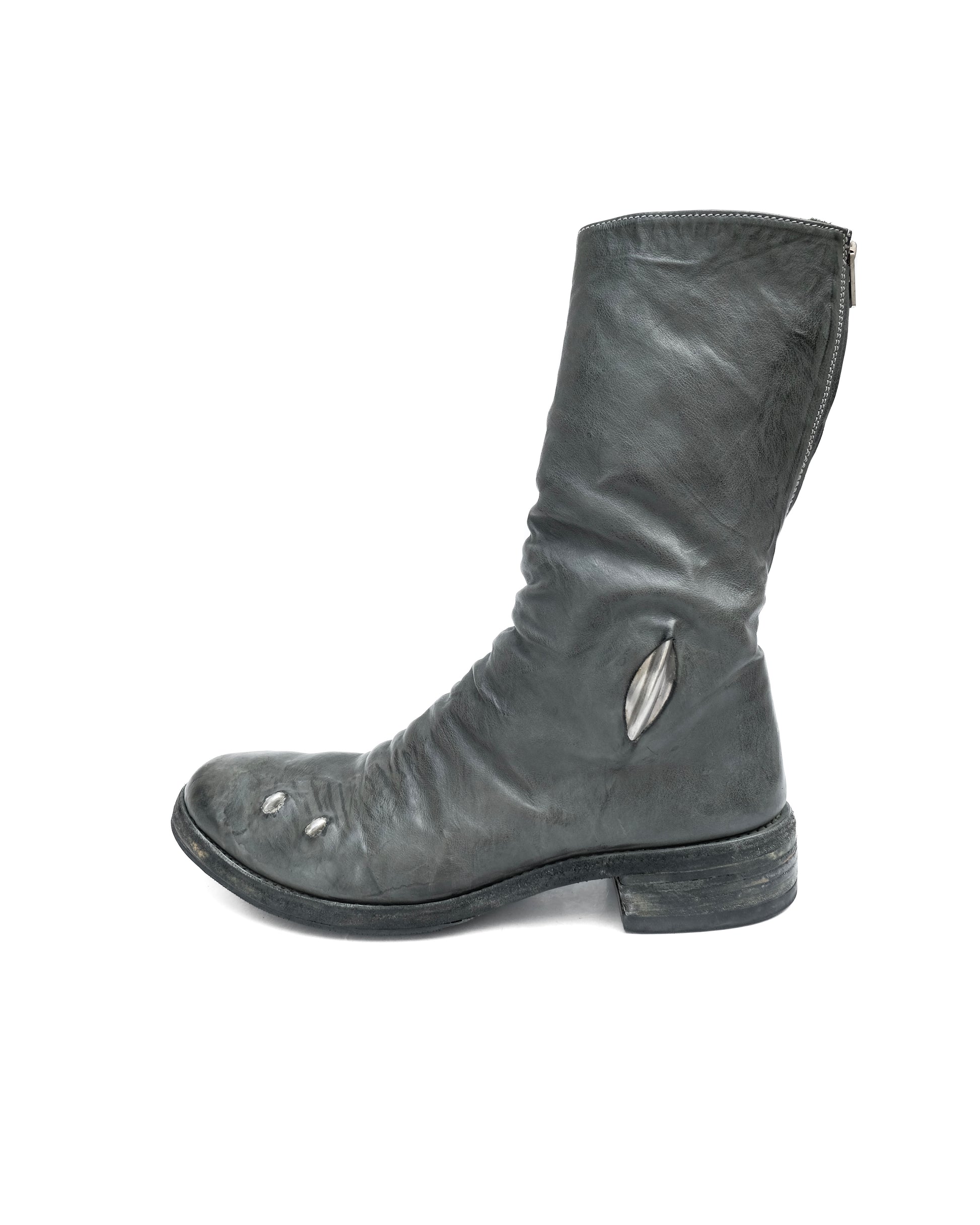 Horse leather Carol Christian Poell tornado boots with prosthetic titanium accents, leather soles and asymmetrical zip closures at back.