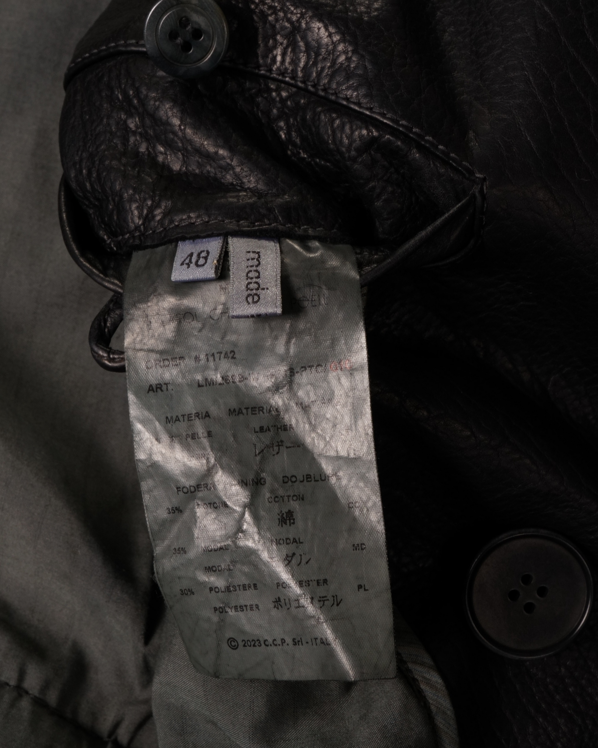 The Chain Seam Leather Trench redefines the classic trench with experimental craftsmanship and sculptural presence. Constructed from rich 100% bison leather, this trench coat blends luxury materials with Poell’s signature structural innovation for a garment that feels both timeless and provocatively modern. The distinctive chain-seam construction—a visible, engineered seam technique that becomes a defining aesthetic element—adds subtle textural contrast and artistic depth to the silhouette.