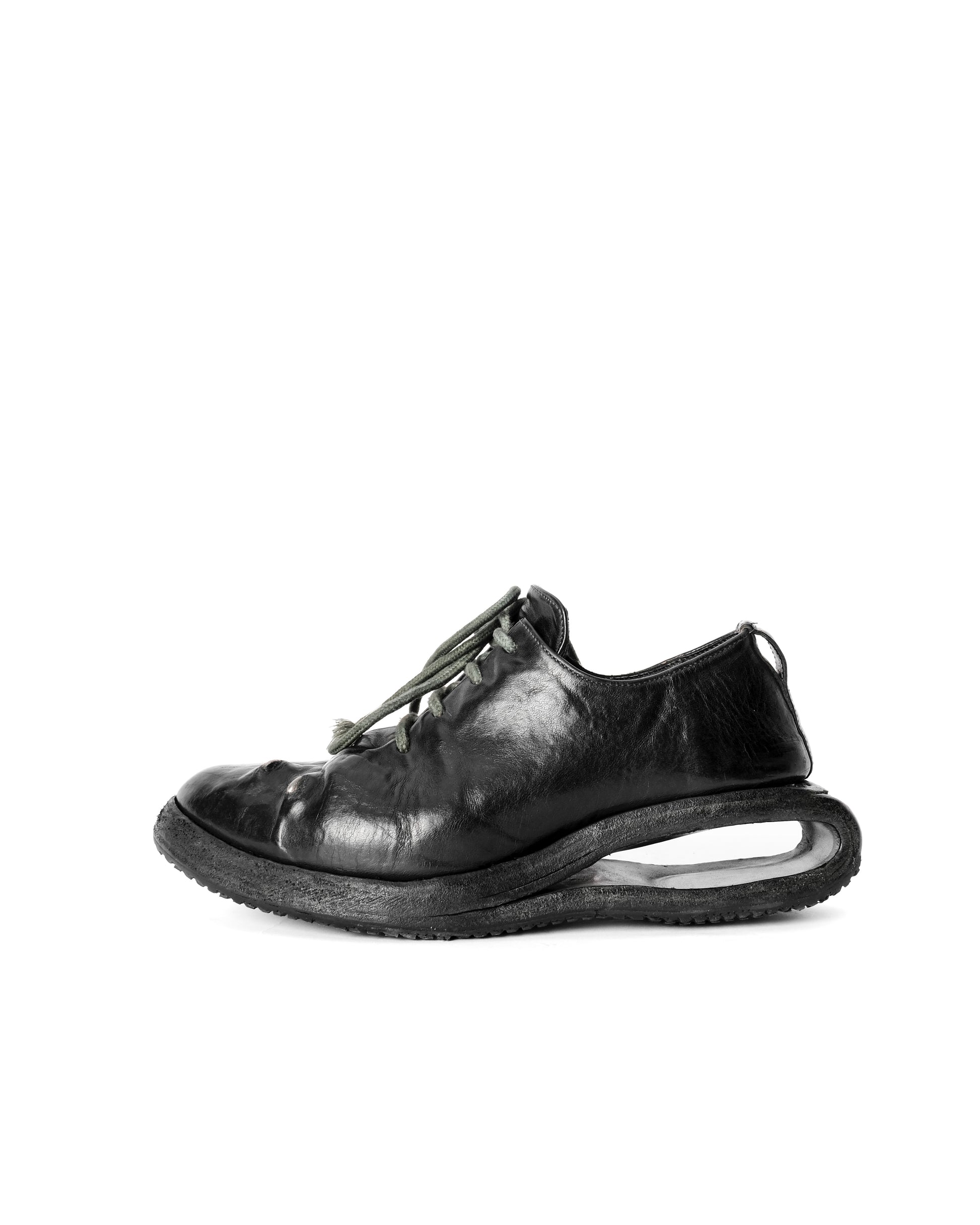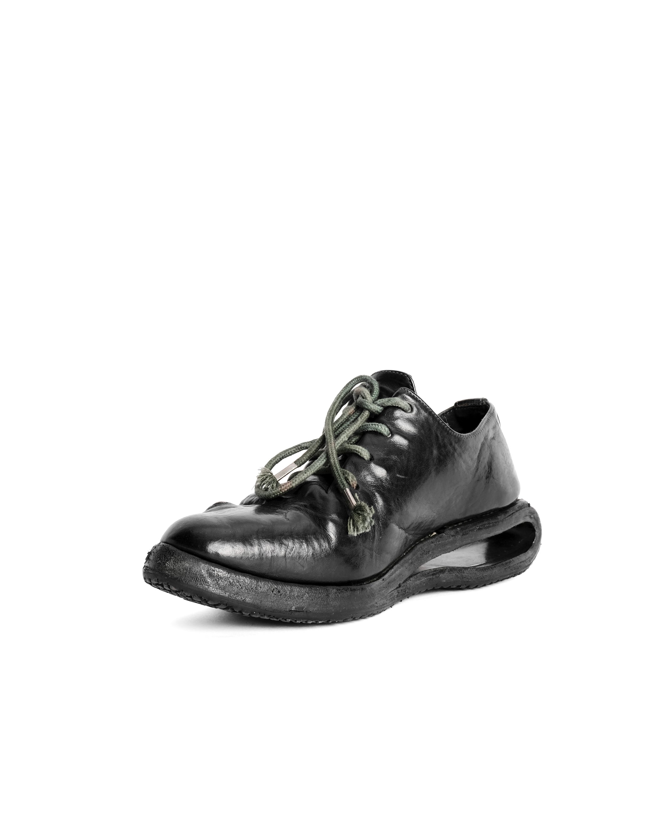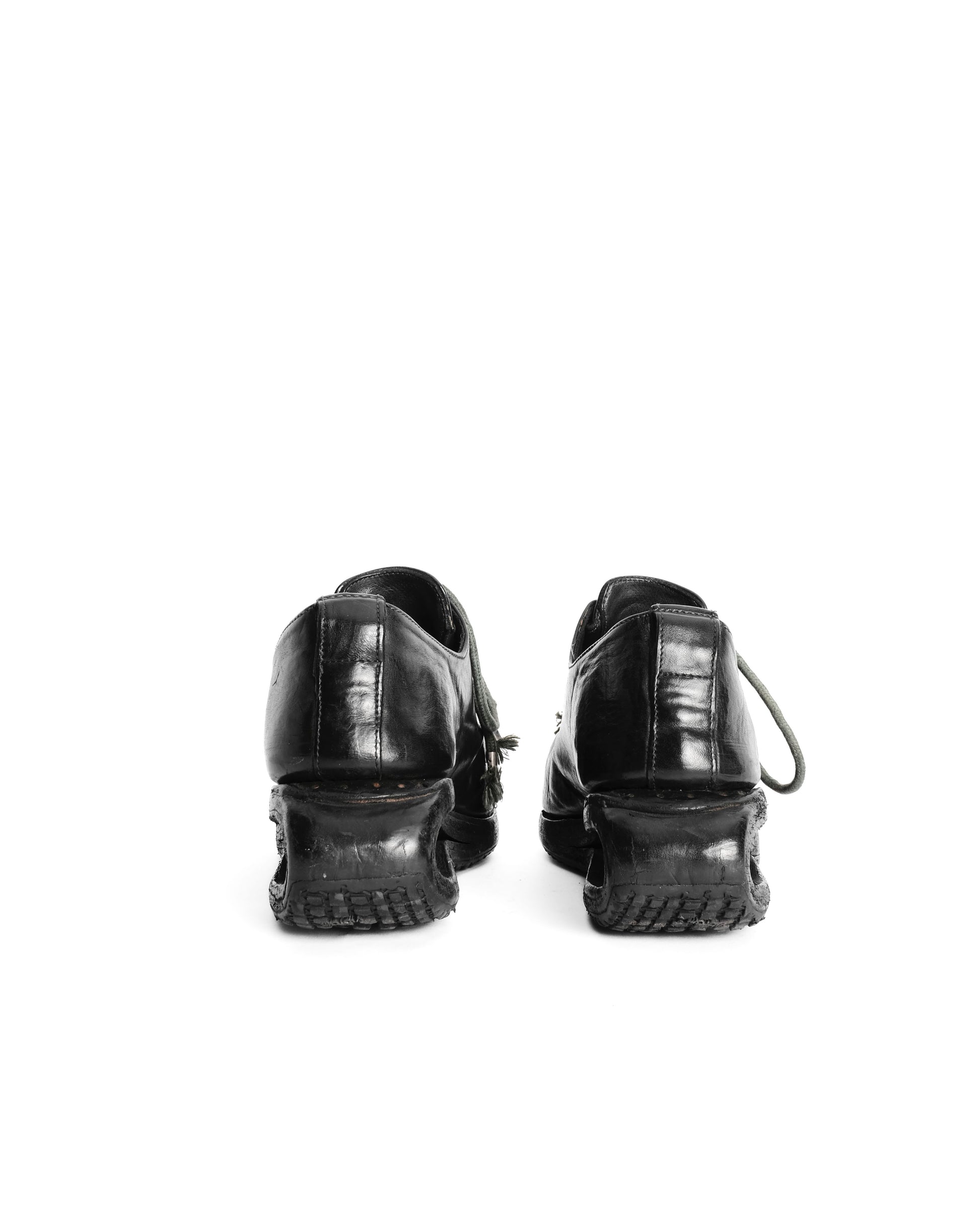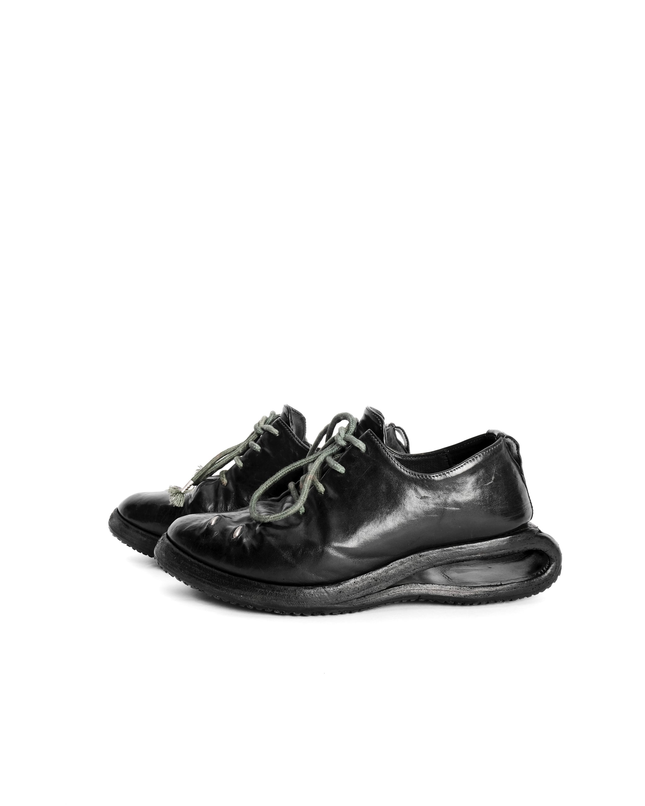 This pair of officer boots is crafted from full-grain horse leather and set on a platform sole for a bold, grounded feel. Built with a durable Goodyear-welted construction and finished with metal-tipped laces, they offer a rugged yet refined look—an ideal boot for dependable, everyday wear.