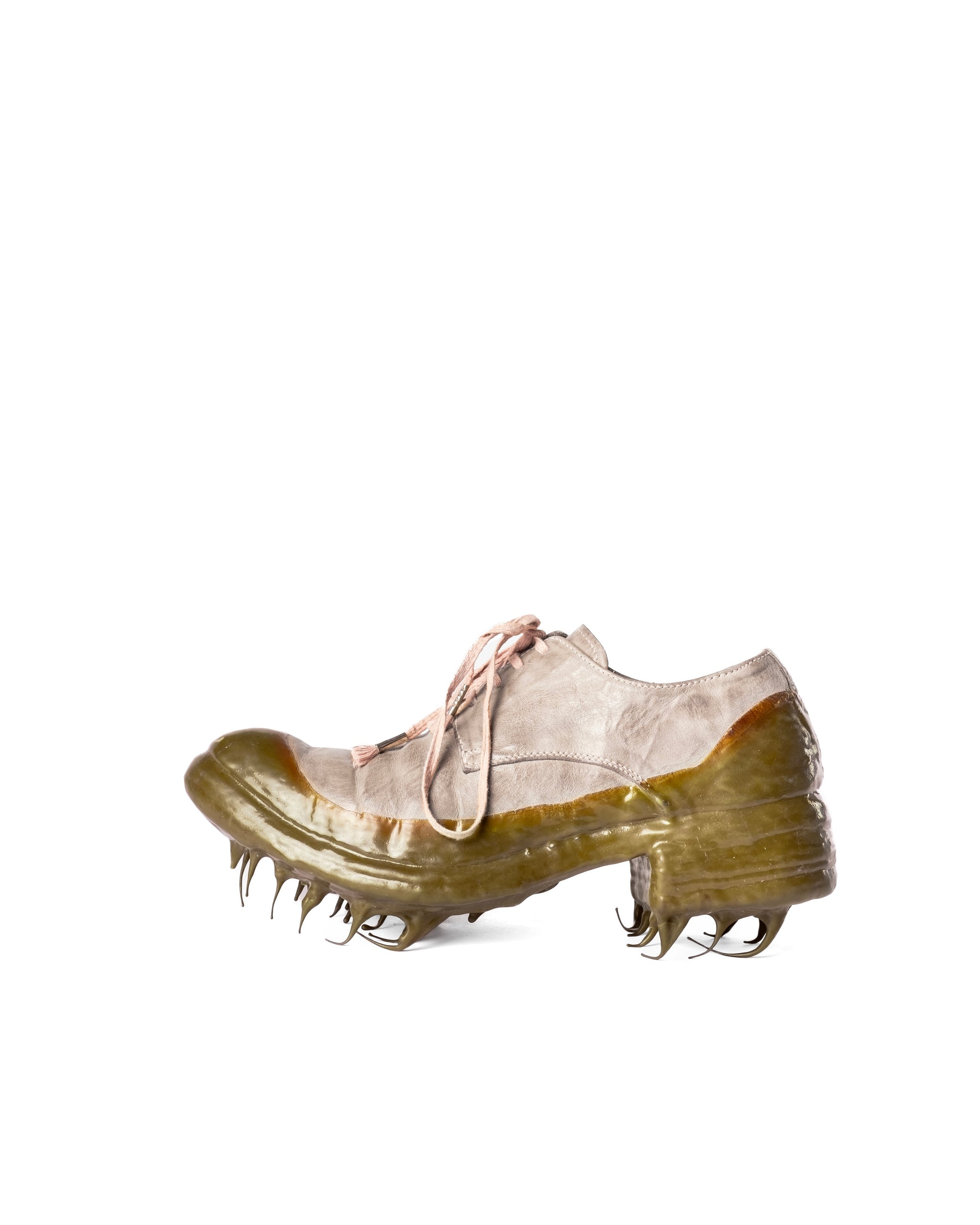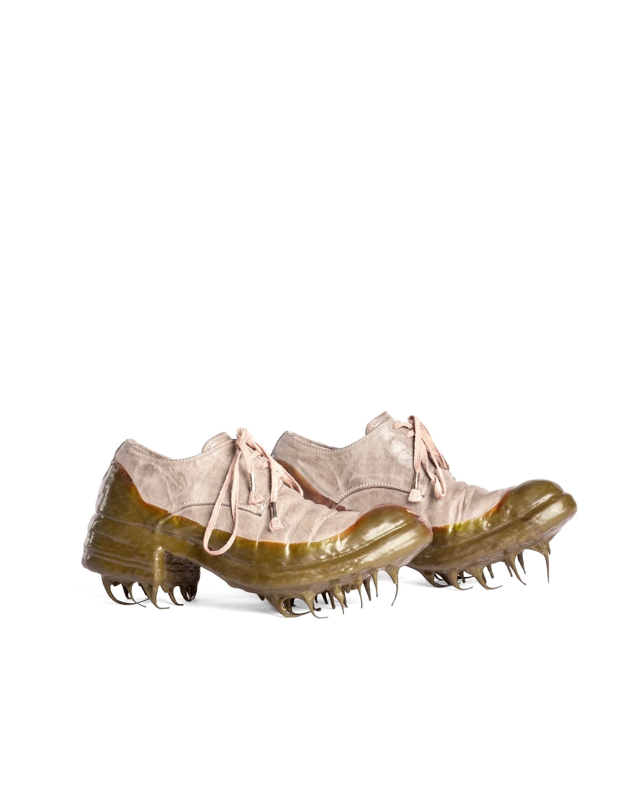 The AM/2600LR Object-Dyed Goodyear Derby reflects Carol Christian Poell’s commitment to transforming traditional craftsmanship into avant-garde design. Made from CORS-PTC horse leather, the shoe is constructed entirely from 100% equine hide, showcasing Poell’s meticulous material selection and signature object-dyeing process.