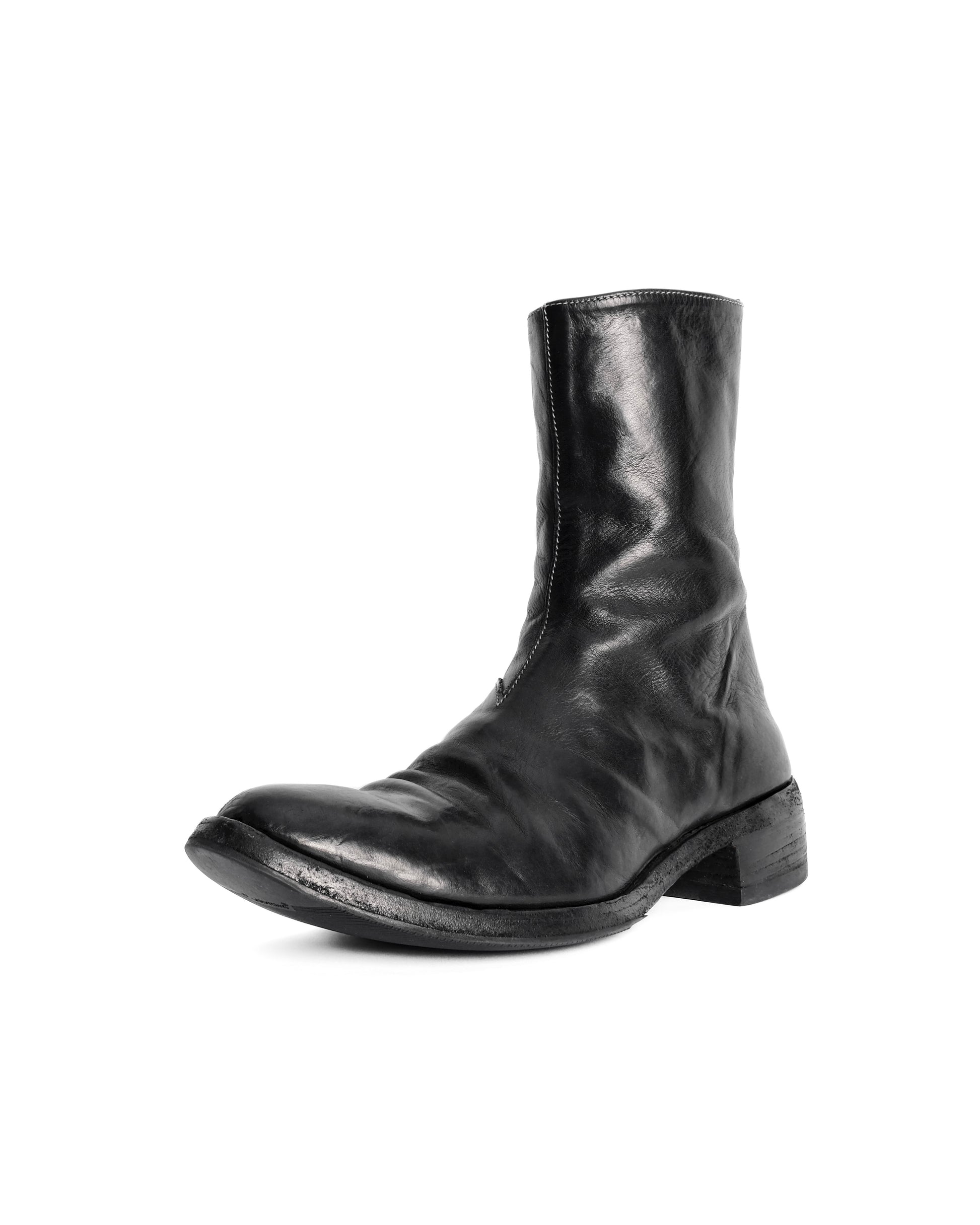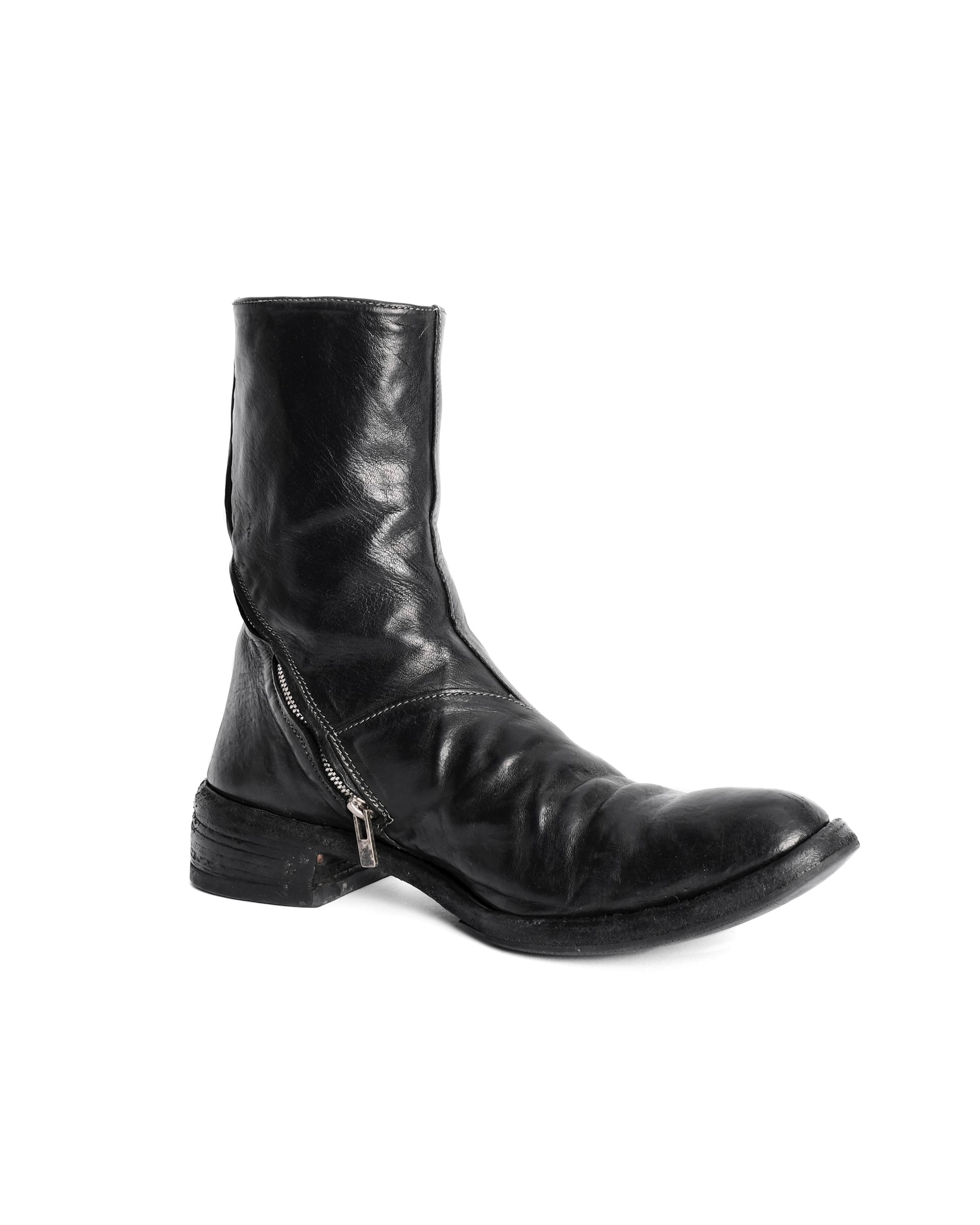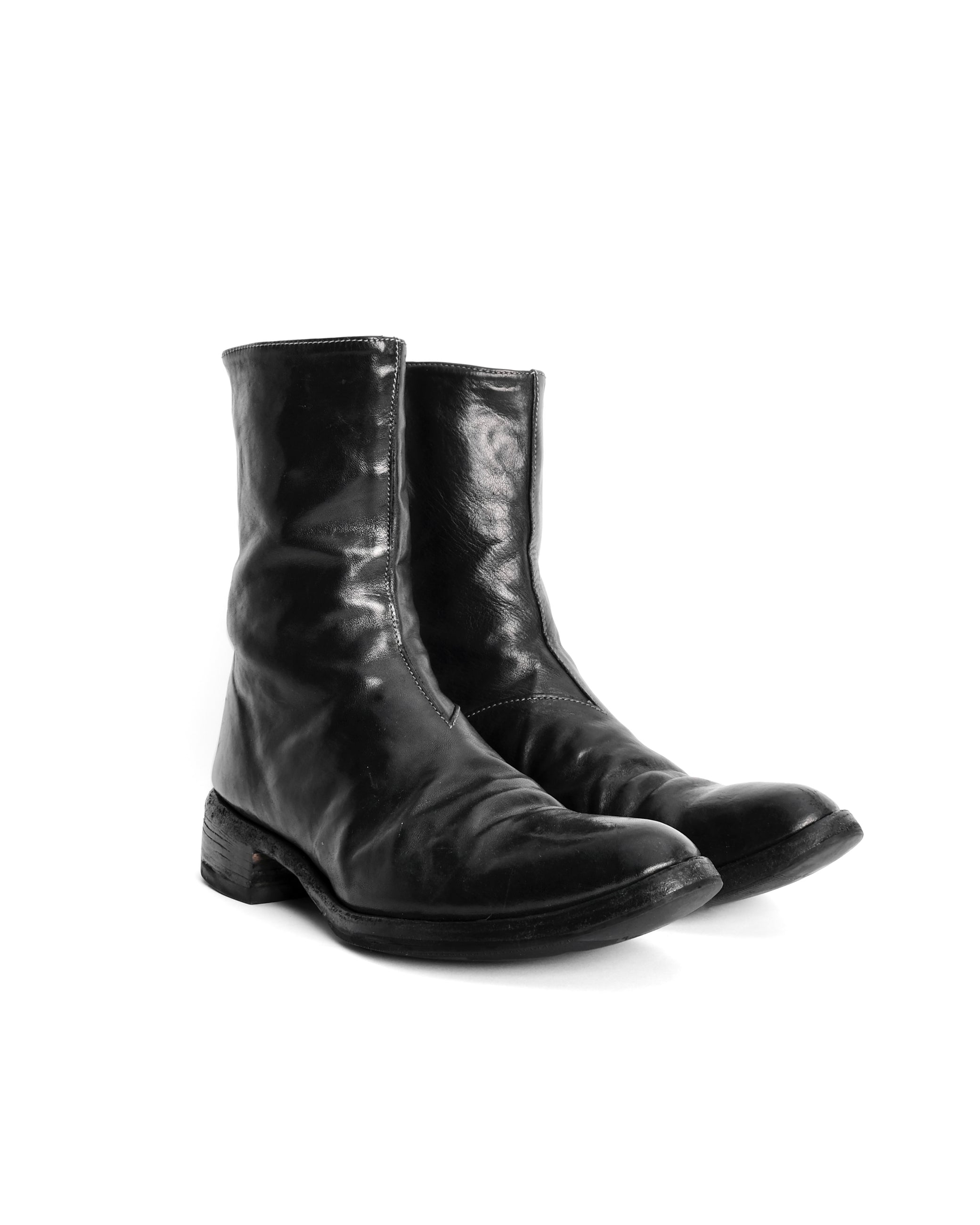 The AM/2601L Tornado Boots stand among Carol Christian Poell’s most recognizable and sought-after footwear designs, defined by their spiral construction and sculptural, uninterrupted silhouette. Crafted from rich horse leather, the upper showcases a dense, expressive grain that molds beautifully to the wearer and develops a striking patina over time.