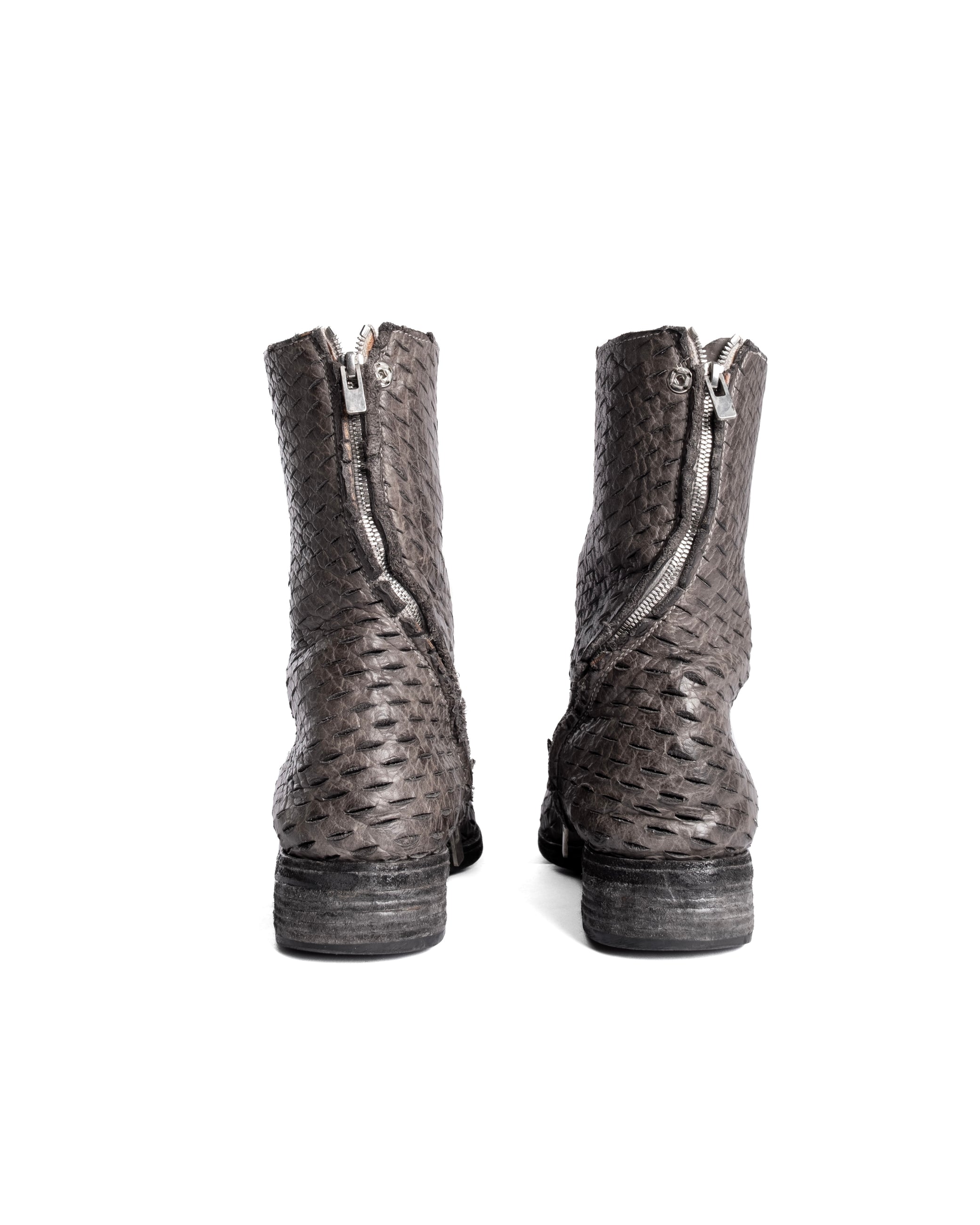 The AM/2601L Laser Cut Tornado Boots represent a bold evolution of Carol Christian Poell’s iconic Tornado silhouette. Crafted from premium bison leather, these boots feature a sculptural, spiral construction enhanced with precise laser-cut detailing, creating a striking interplay of texture, shadow, and form.