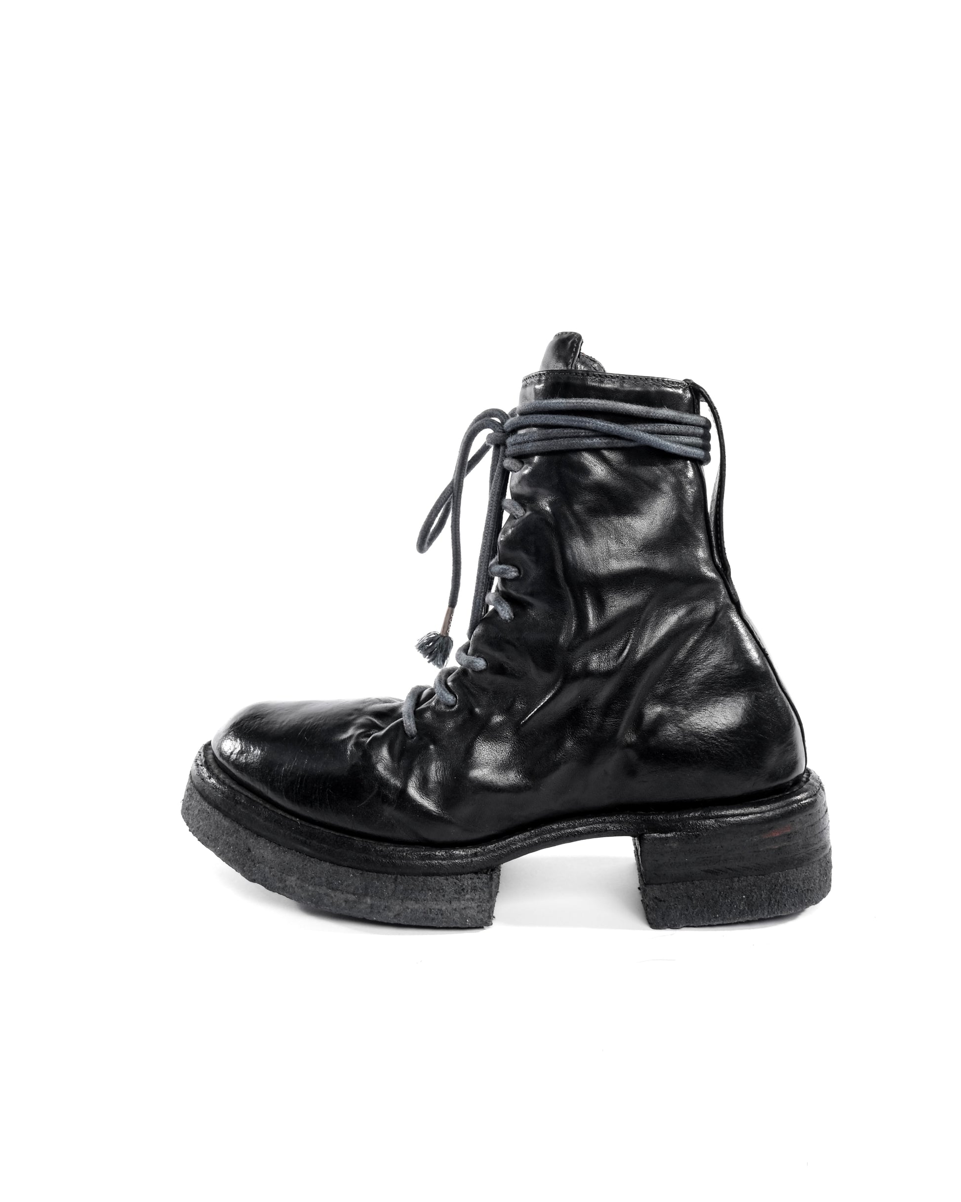 The AM/2509 Paper Dart Combat Boots showcase Carol Christian Poell’s signature fusion of military inspiration and avant-garde construction. Crafted from premium horse leather, the boots feature a unique “paper dart” folding technique that sculpts the upper into sharp, angular contours, creating a dynamic, architectural silhouette.