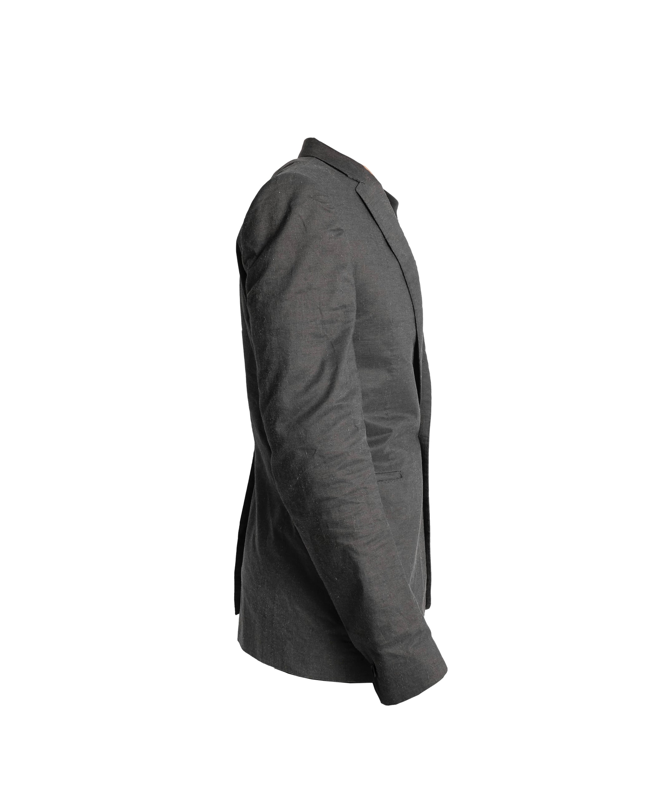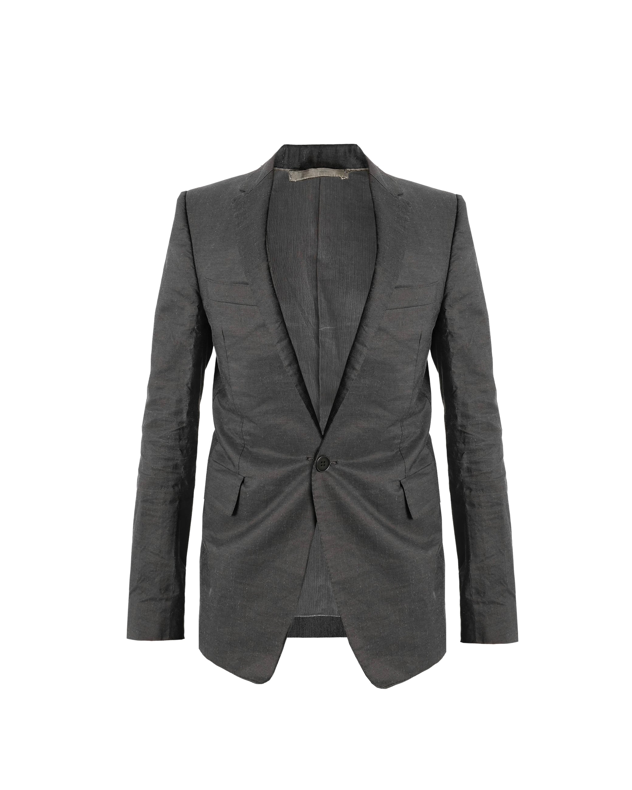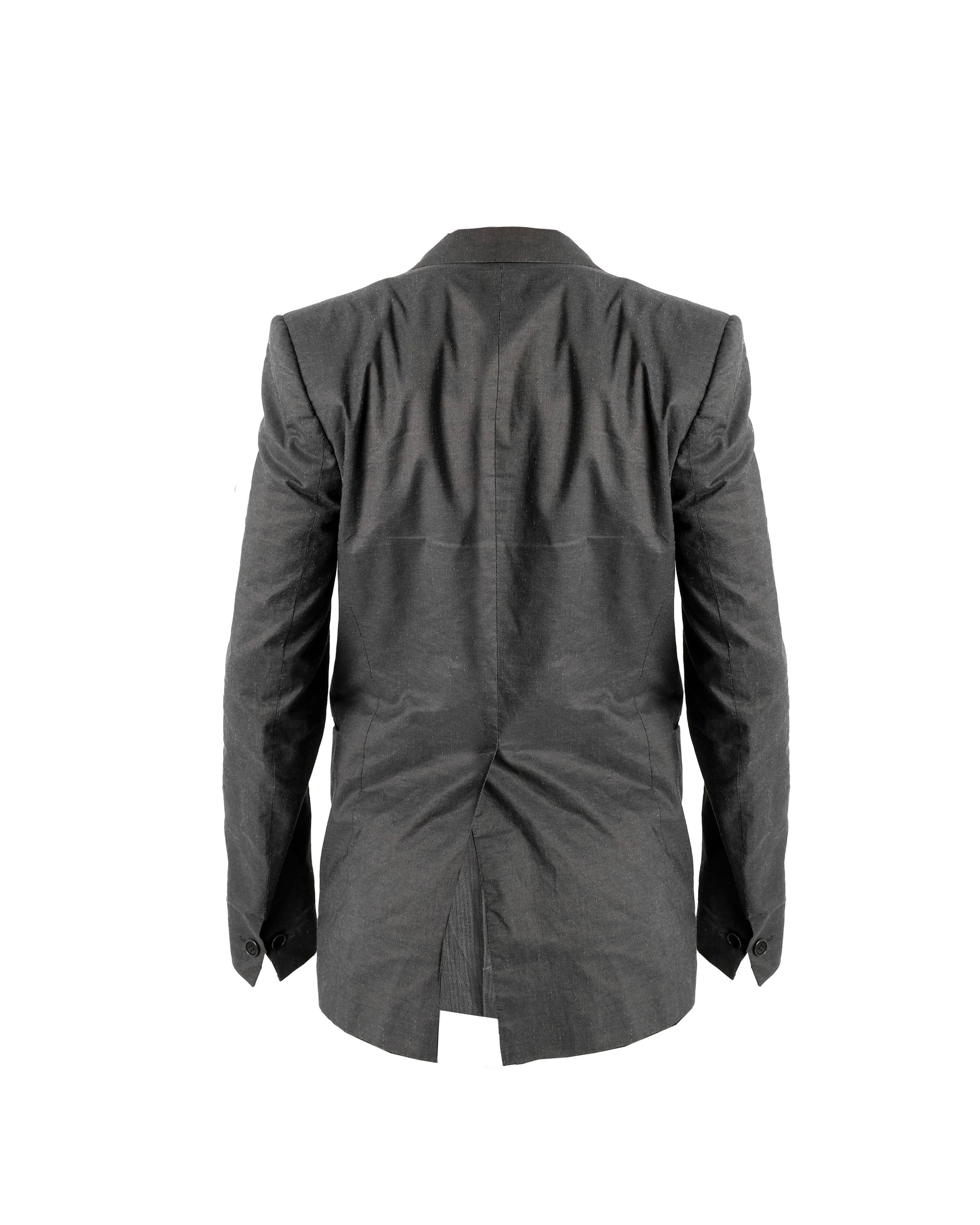 The Lined-Unlined 1-Button Jacket, showcases Carol Christian Poell’s distinctive reworking of traditional tailoring. Crafted from ZEILE—a cotton-linen blend with a wide, breathable weave—the fabric creates a naturally airy structure that pairs seamlessly with the jacket’s partially lined interior. The result is a refined yet deconstructed silhouette that captures Poell’s signature balance of precision and ease.