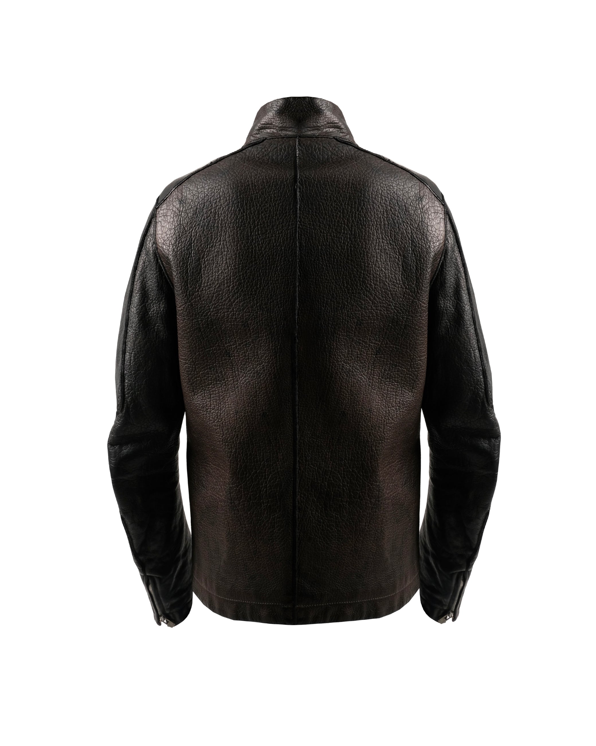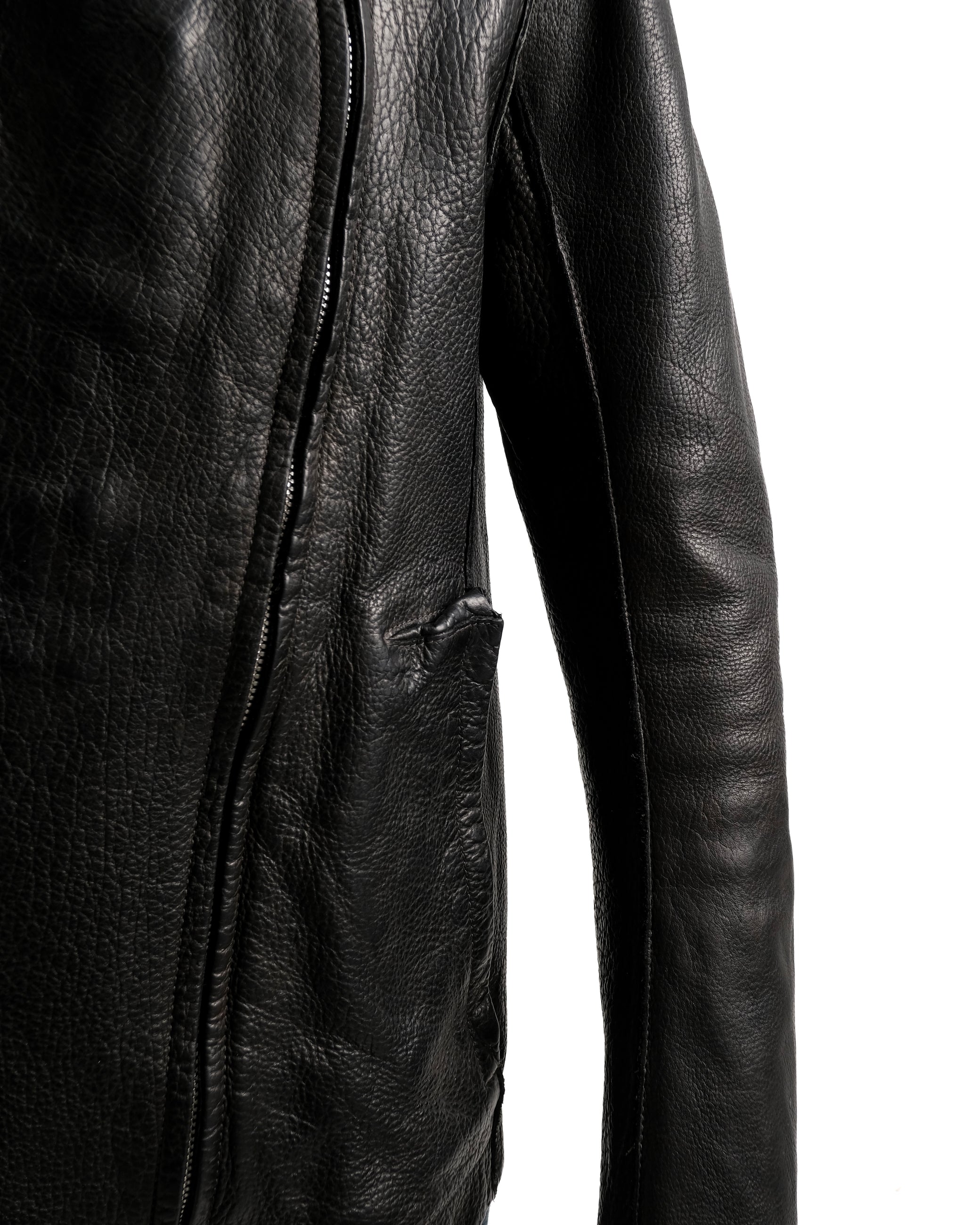 A sculptural reinterpretation of classic outerwear, the Carol Christian Poell Leather Fencing Jacket exemplifies the brand’s avant-garde mastery and artisanal precision. Meticulously handcrafted in Italy from premium BIAS-PTC garment-dyed bison leather, this piece showcases Poell’s signature approach to material and form — rich in texture, depth, and character.Inspired by fencing jacket archetypes, the design features dual front zippers that offer versatile wearability and allow the central panel to be removed or reconfigured via an internal buckle for personalized styling.