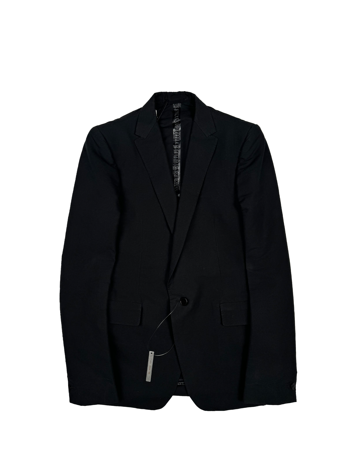 Carol Christian Poell GM/2472 jacket in CORAWO. Deep black and features notched lapels, two pockets, a single-button closure at the front and tape seam running through the interior.
