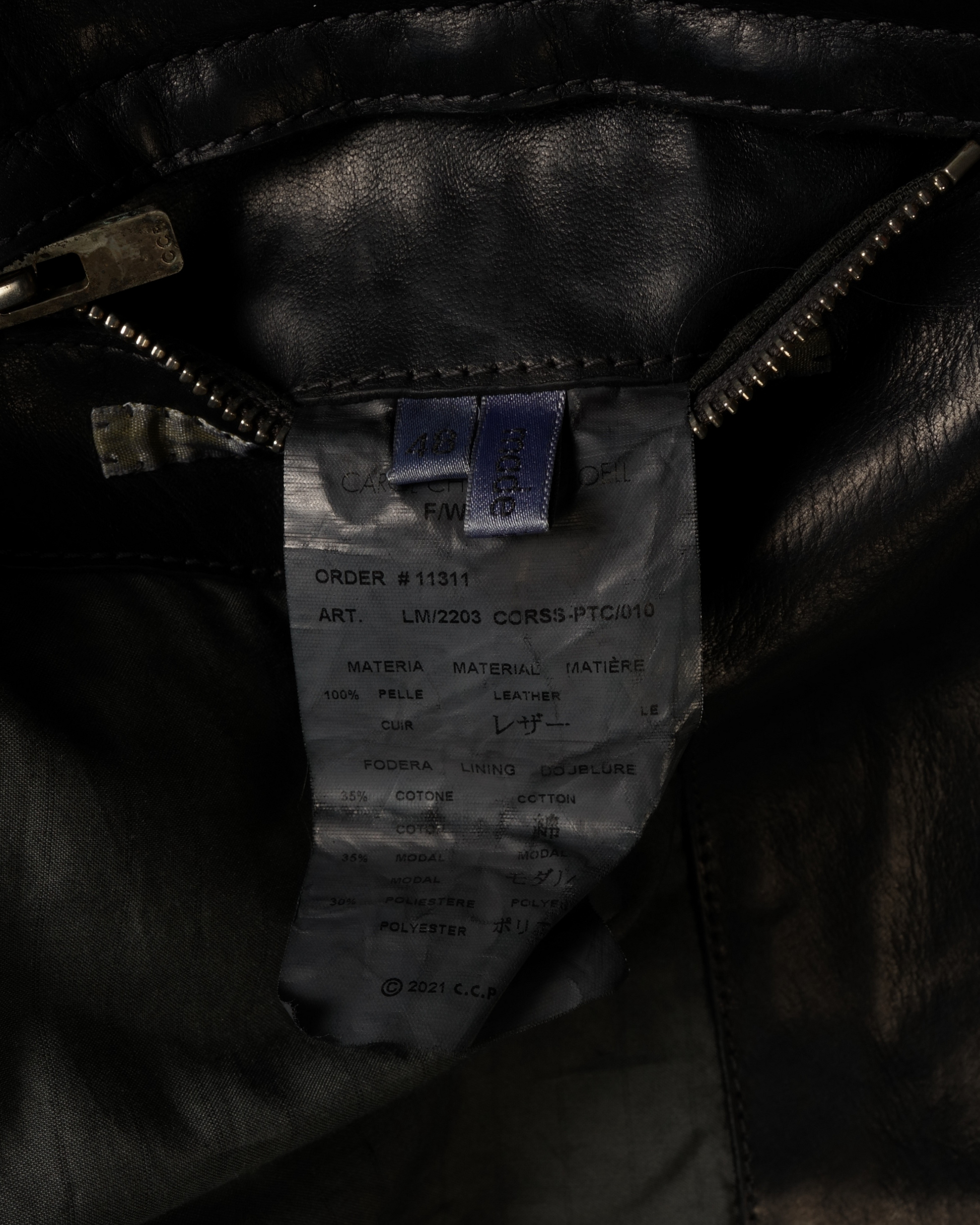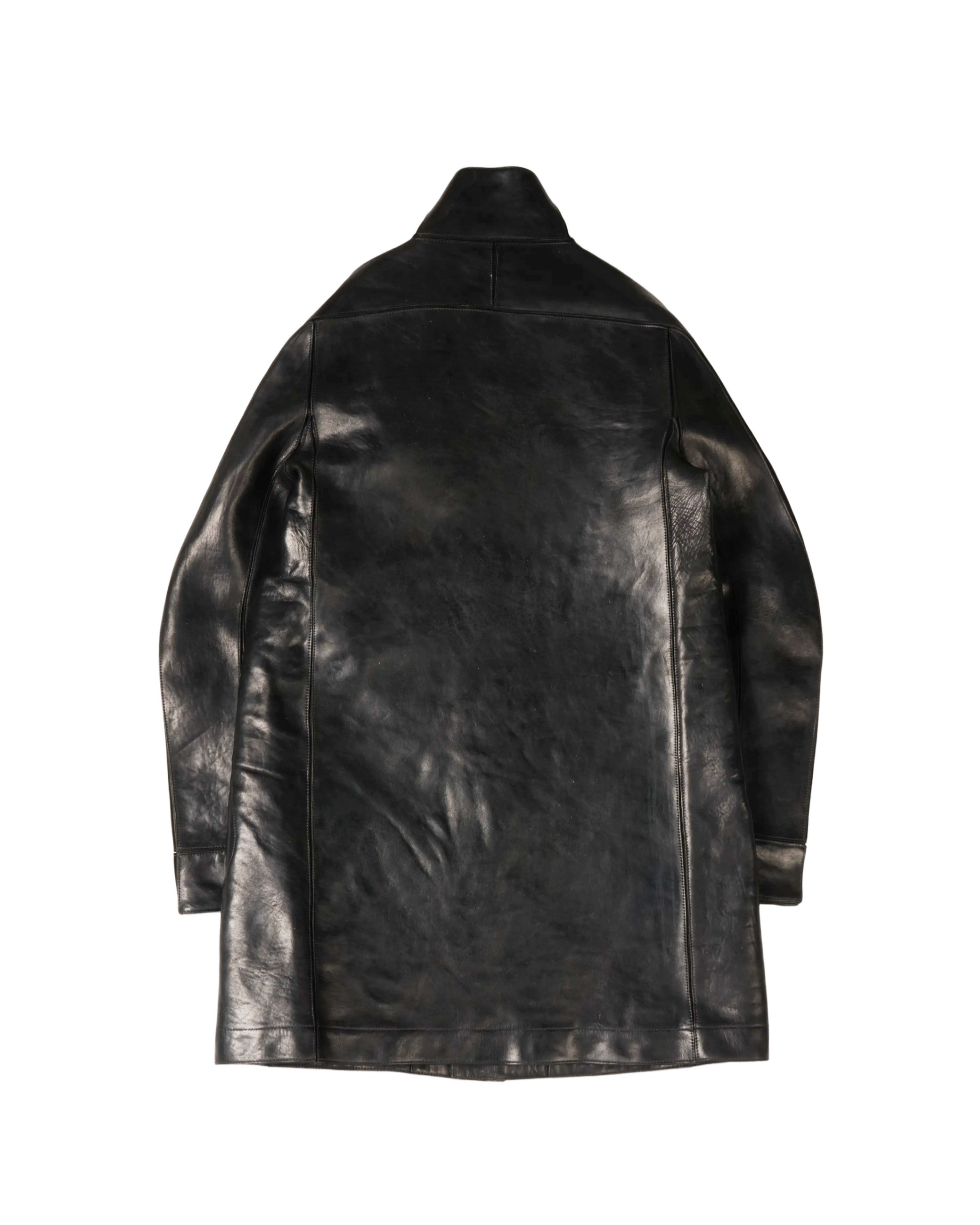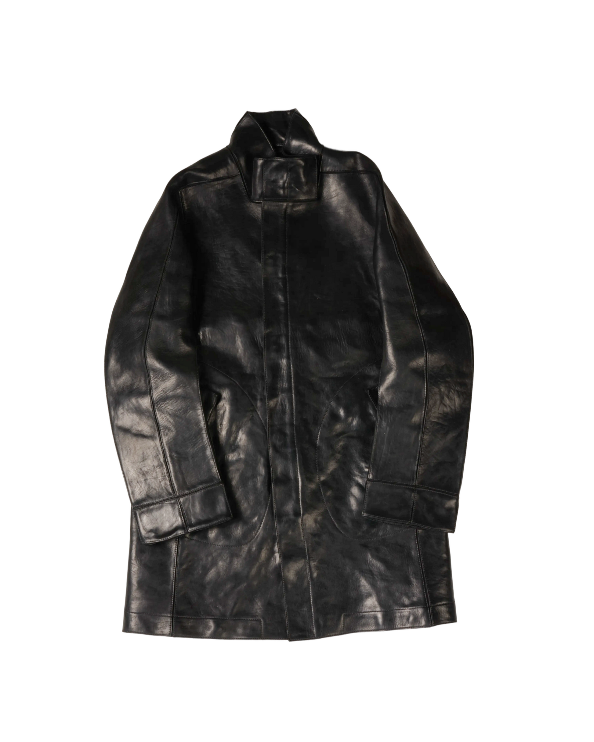 The Box Leather Parka reimagines traditional outerwear with a bold, architectural sensibility. Crafted from robust, object-dyed box leather, this parka features a distinctive box-cut silhouette that delivers sculptural presence and refined structure—hallmarks of Poell’s visionary approach to garment design.