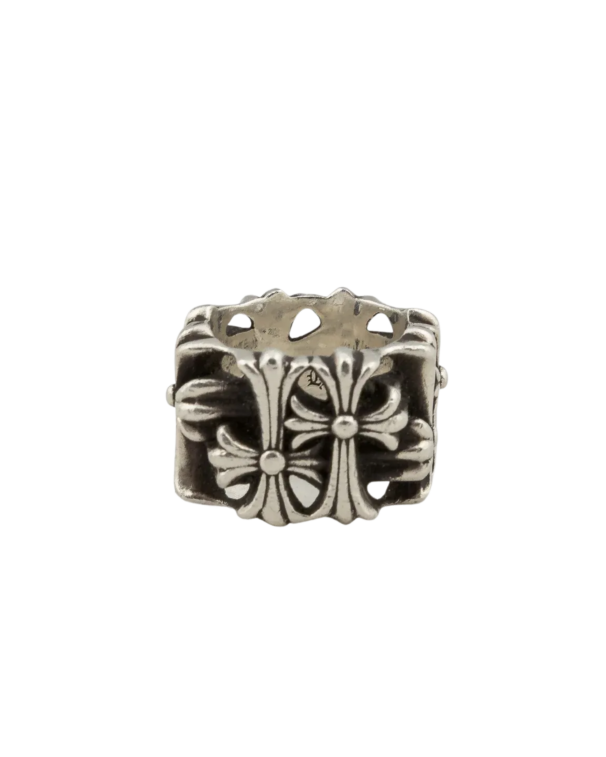 The Chrome Hearts Cemetery Ring is a striking piece defined by its bold cross engravings and substantial design. It embodies the brand’s dark, rebellious aesthetic while remaining a timeless symbol of its iconic craftsmanship. Year 2003.