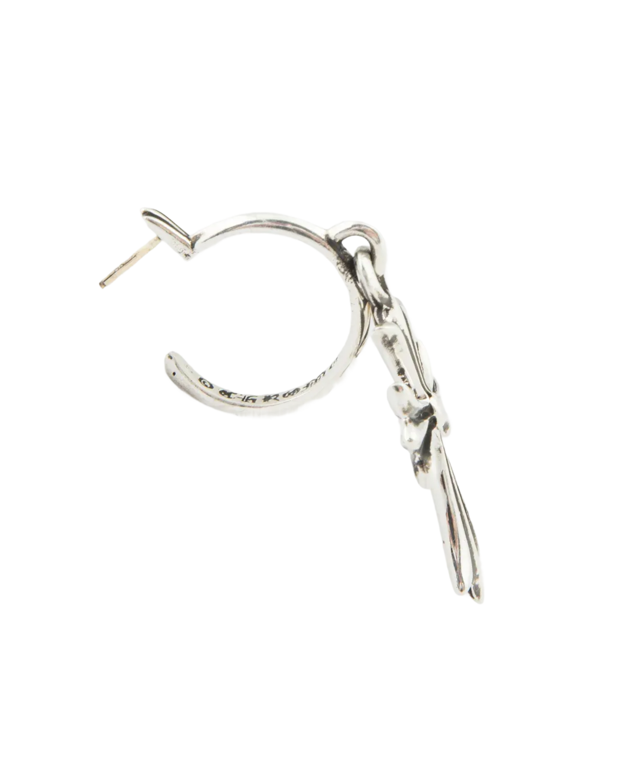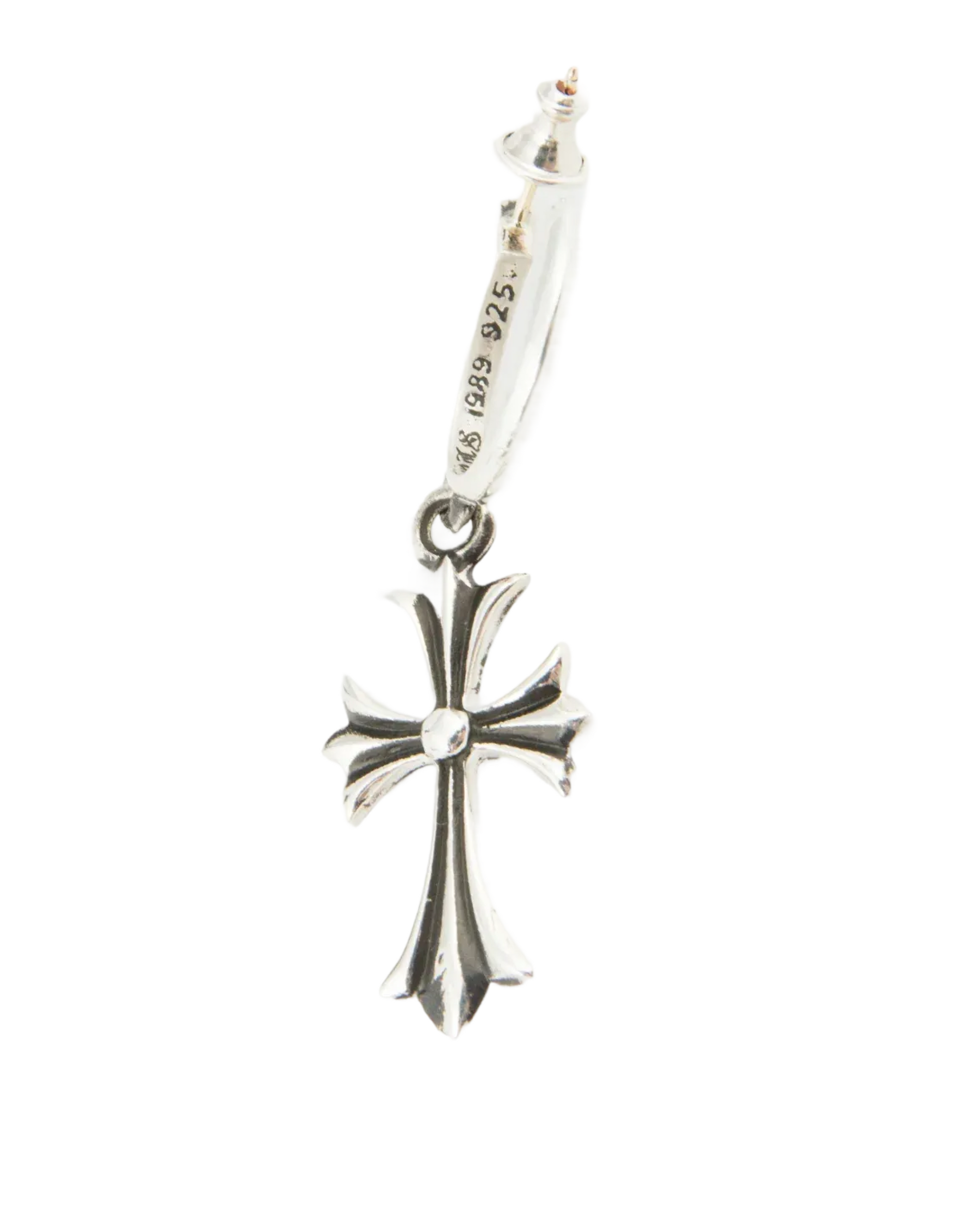 The Chrome Hearts Tiny Cross Hoop Earring distills the brand’s signature gothic aesthetic into a refined, wearable silhouette. Crafted from solid .925 sterling silver, the piece features a sleek miniature hoop paired with the iconic CH cross charm—sculpted with crisp detailing and a subtle, artisanal finish. Despite its compact size, the earring carries the bold attitude and handcrafted quality synonymous with Chrome Hearts.