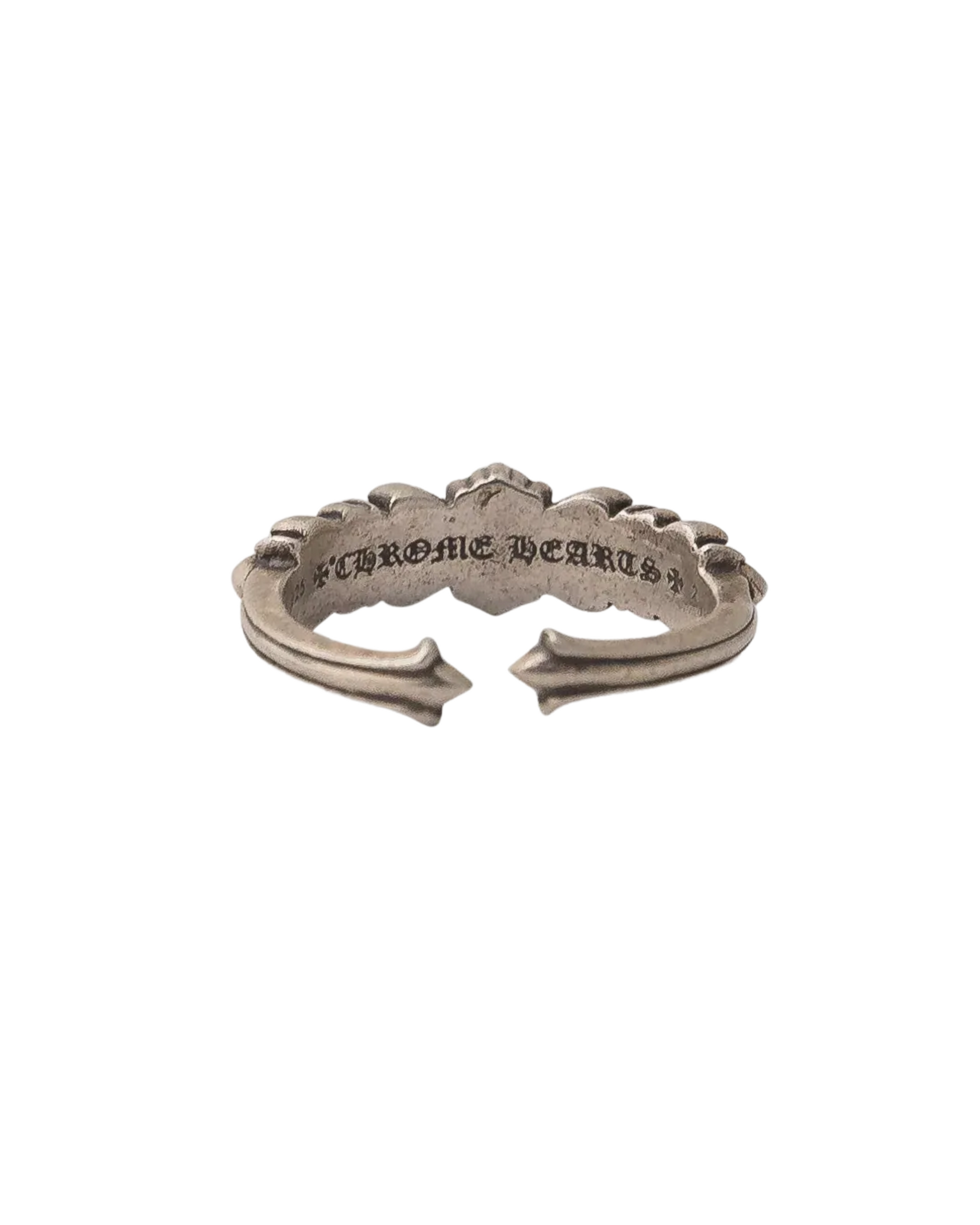 The Chrome Hearts Baby Double Floral Ring is a refined take on one of the brand’s most iconic motifs. Crafted from premium .925 sterling silver, the ring features two intricately carved floral crosses that sit side by side—small in scale but rich in detail. Each petal is hand-finished, giving the piece a textured, dimensional look that reflects the label’s signature artisanal craftsmanship.