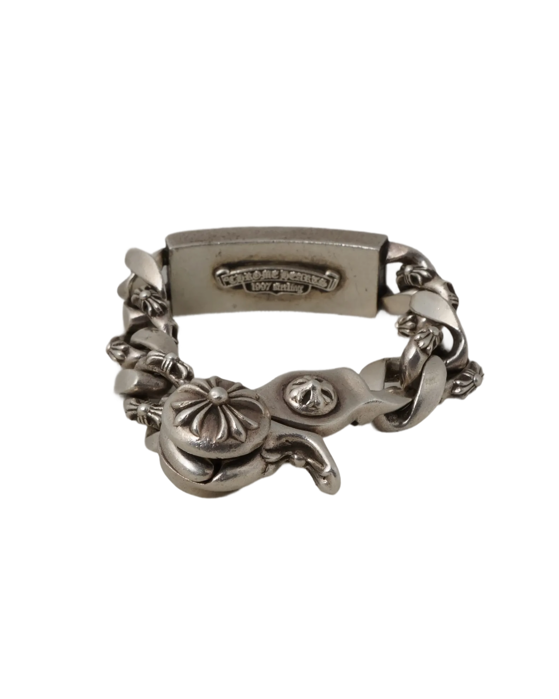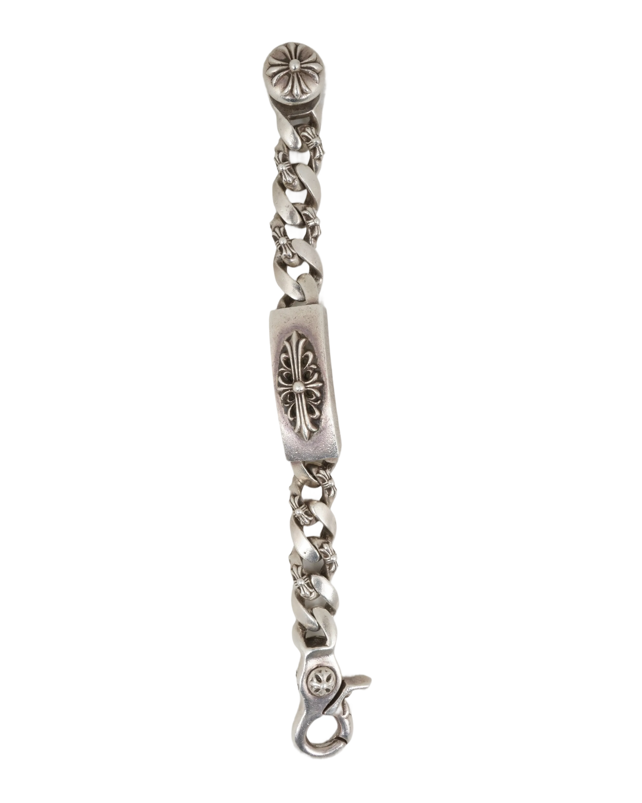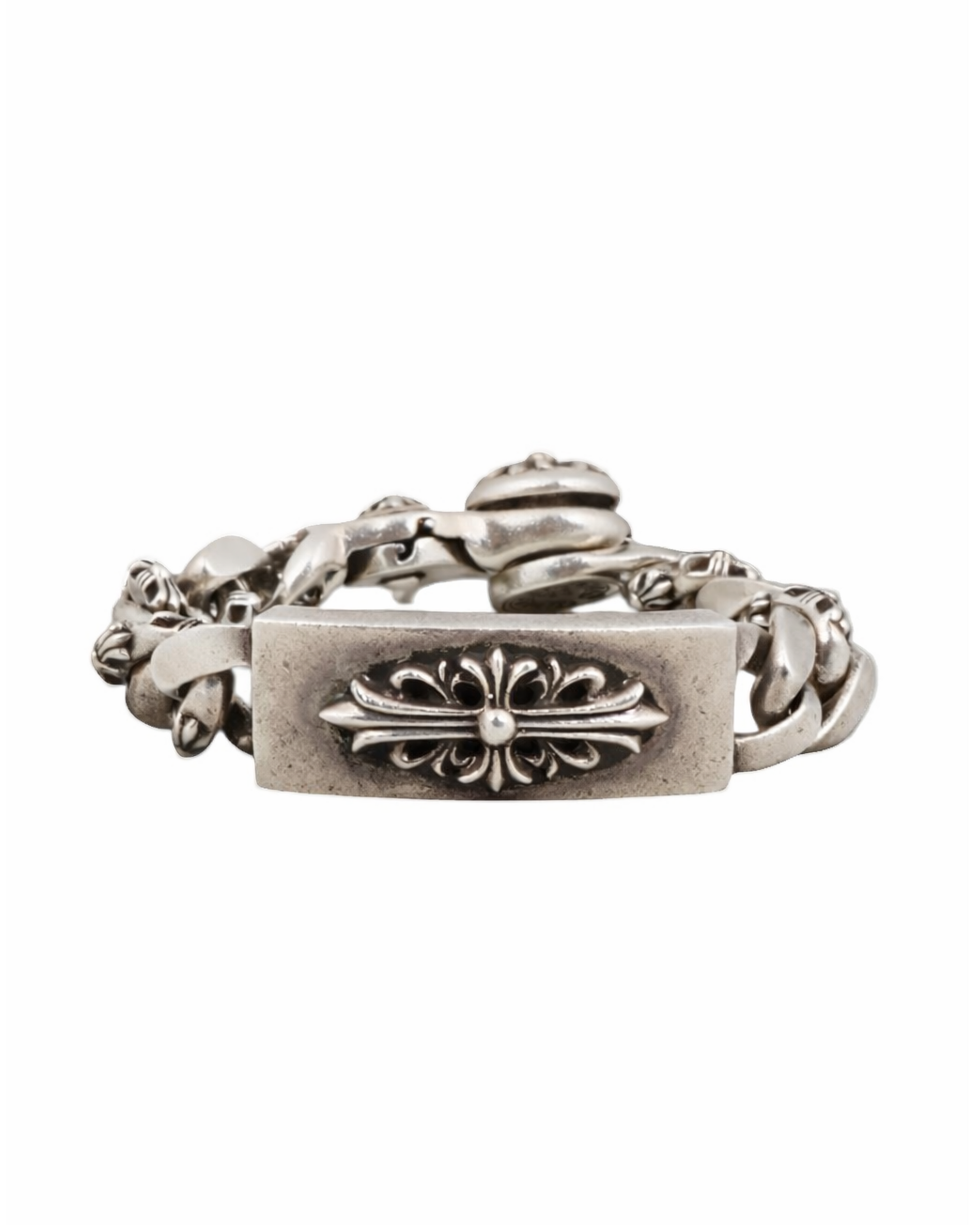 Crafted from premium .925 sterling silver, this bracelet showcases a signature floral-motif ID plate seamlessly integrated into a series of fancy, intricately sculpted links — a design that radiates both luxury and attitude. Comes with lobster Clasp.
