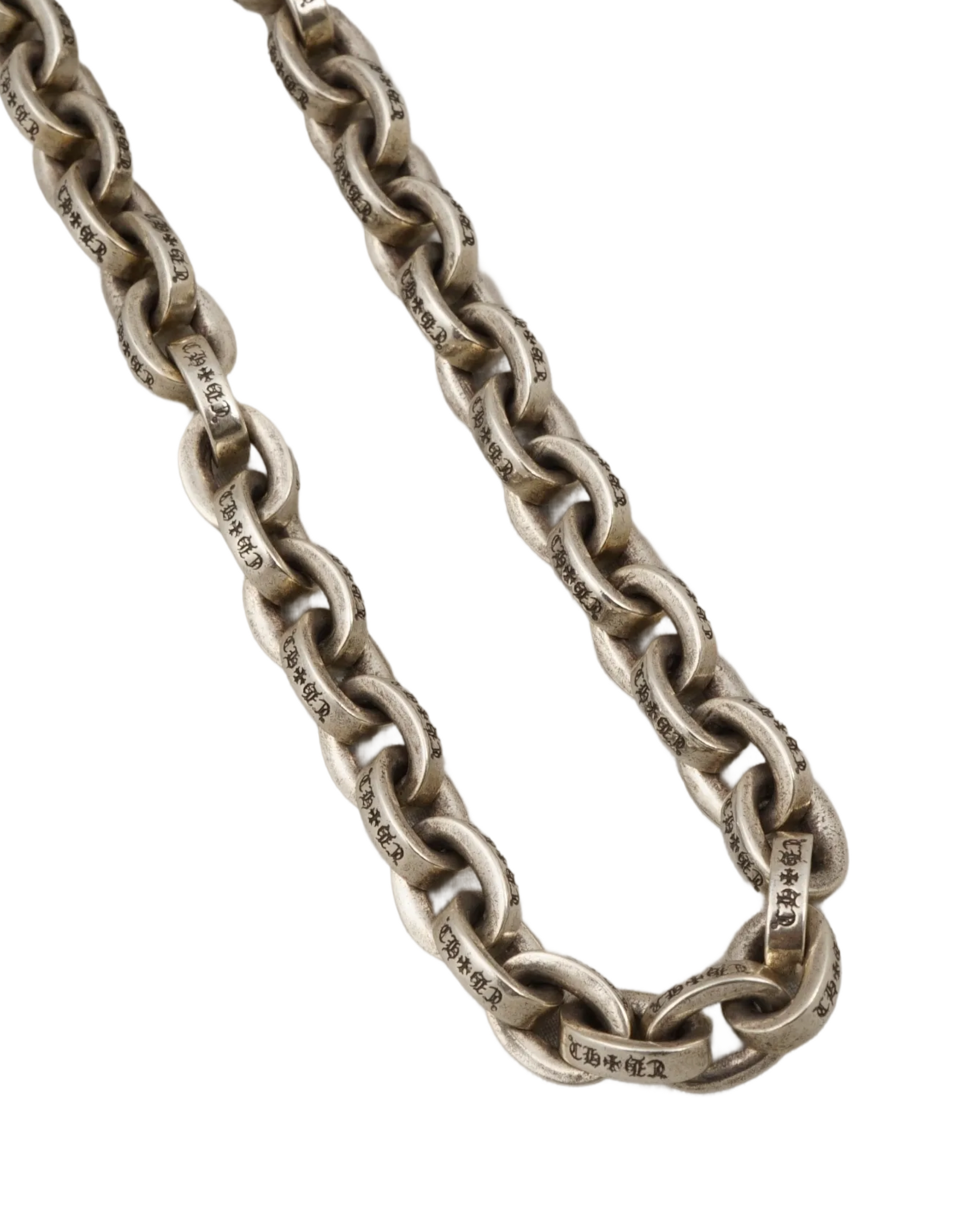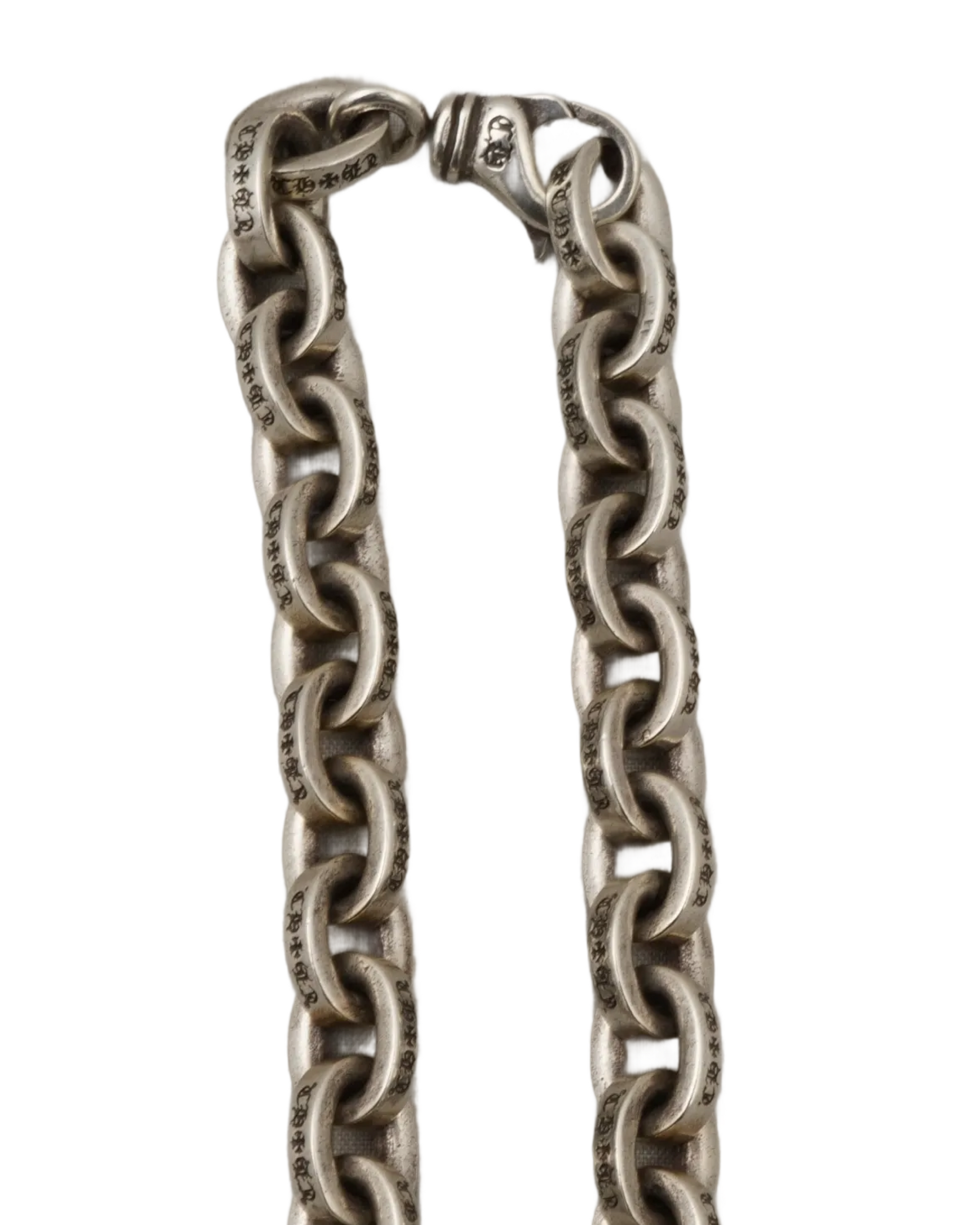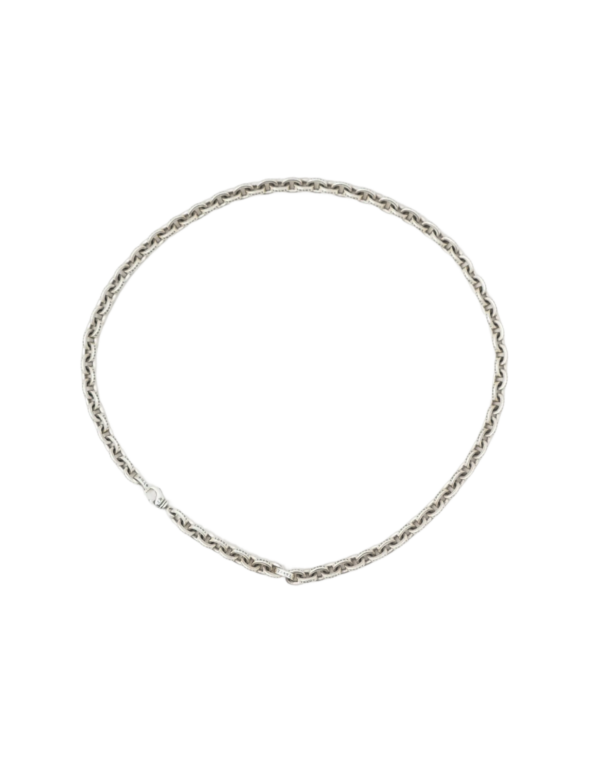 A definitive symbol of edgy luxury and standout craftsmanship, the Chrome Hearts XL Paper Chain Necklace reimagines classic chain design through the brand’s iconic gothic-inspired lens. Meticulously handcrafted from .925 sterling silver, this substantial statement piece features bold, elongated “paper” links that deliver a striking interplay of weight and movement