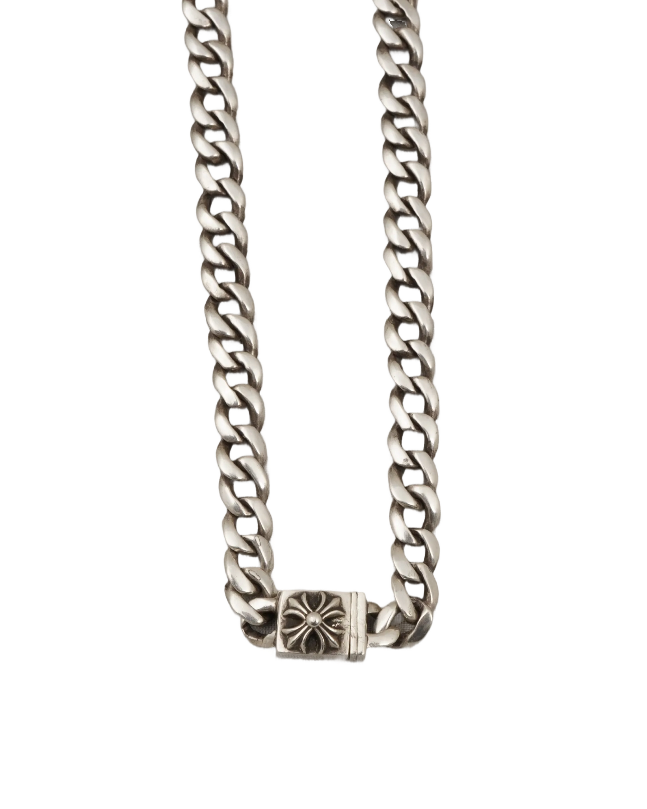An emblem of bold luxury and timeless craftsmanship, the Chrome Hearts Cuban Link Necklace fuses classic chain design with the brand’s signature rock-inspired edge. Expertly crafted from high-grade sterling silver, this substantial Cuban link piece features meticulously polished interlocking links that create a fluid, tactile silhouette with enduring shine.