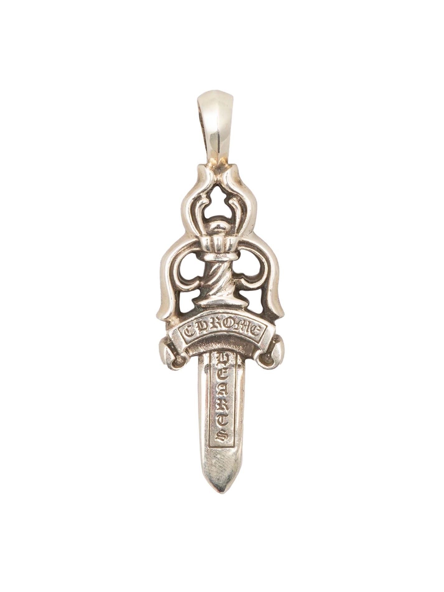The XL version of the classic Chrome Hearts dagger pendant with the sideways bale so it sits flat on your chest.