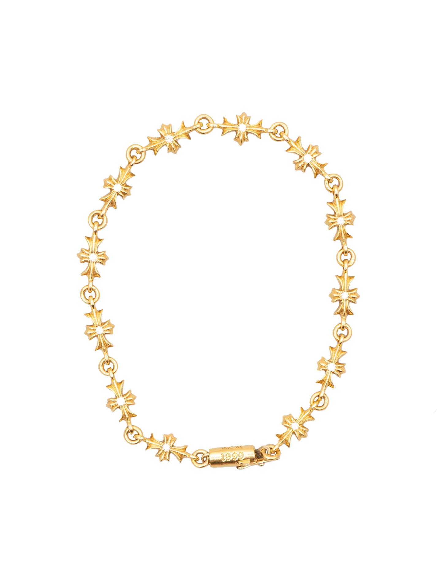 A solid 22k Chrome Hearts bracelet made of Tiny E crosses linked together.