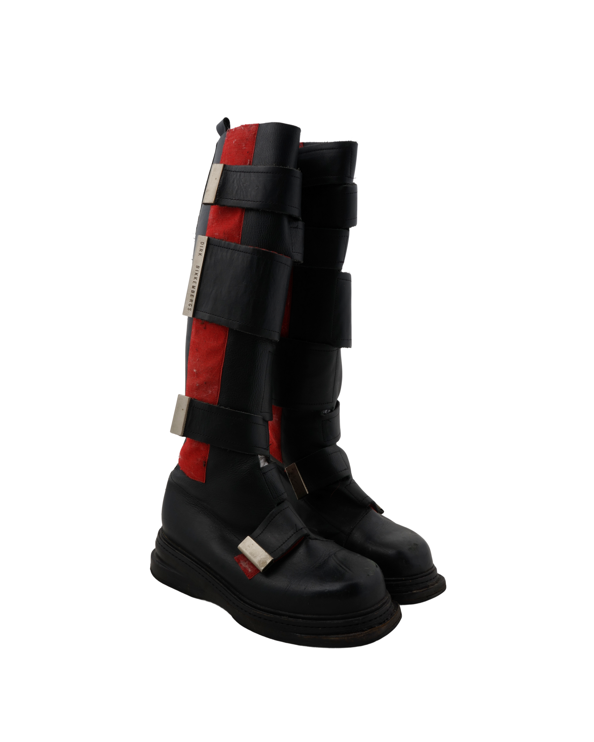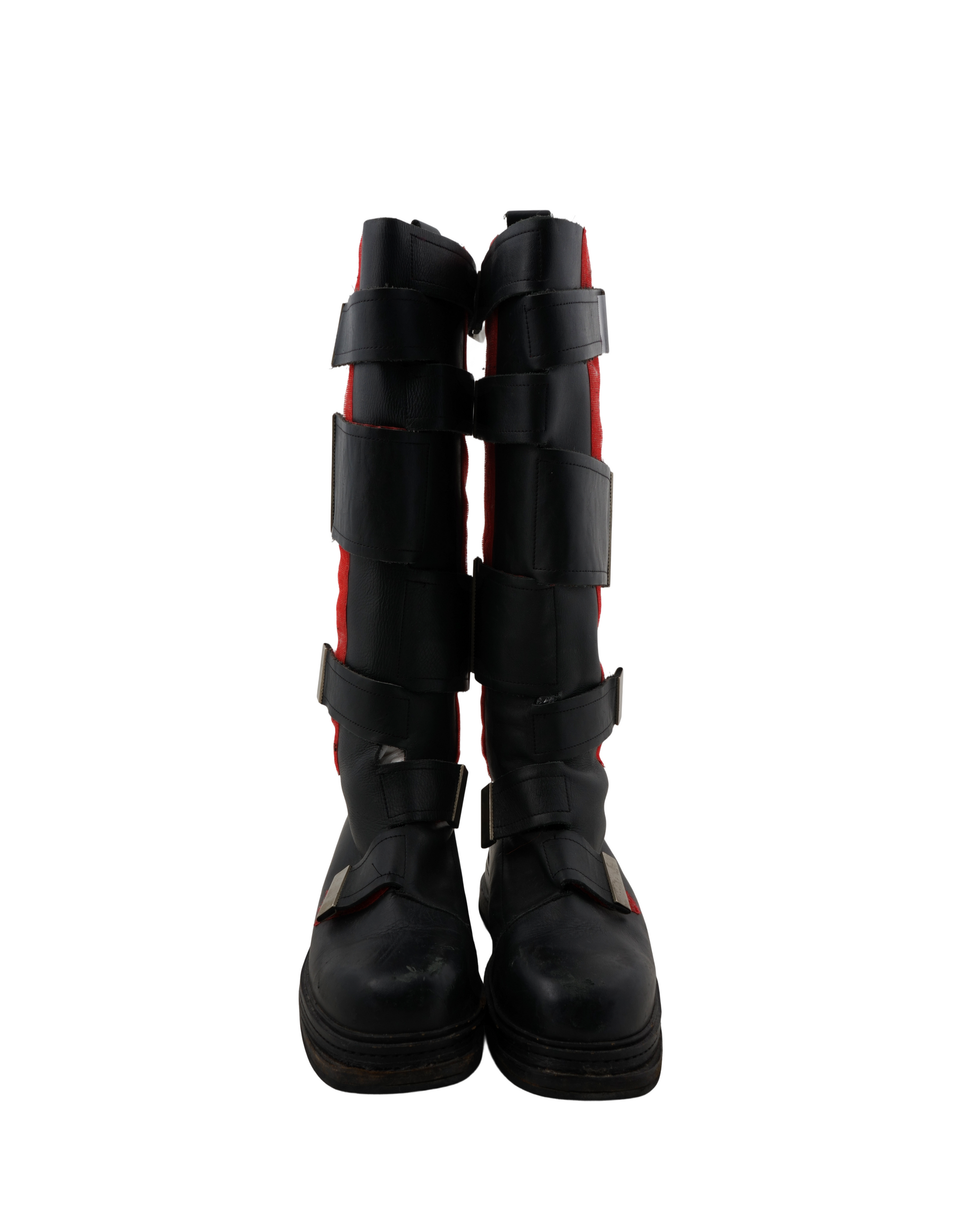 Crafted from premium black leather, the Astro Boot features a bold, futuristic silhouette defined by its distinctive multi-strap fastening system, replacing traditional lacing with adjustable Velcro straps and metal hardware. The exaggerated proportions and chunky rubber sole give the boot a powerful, almost mechanical presence, while reinforced stitching and heavy-duty construction emphasize durability and functionality.
