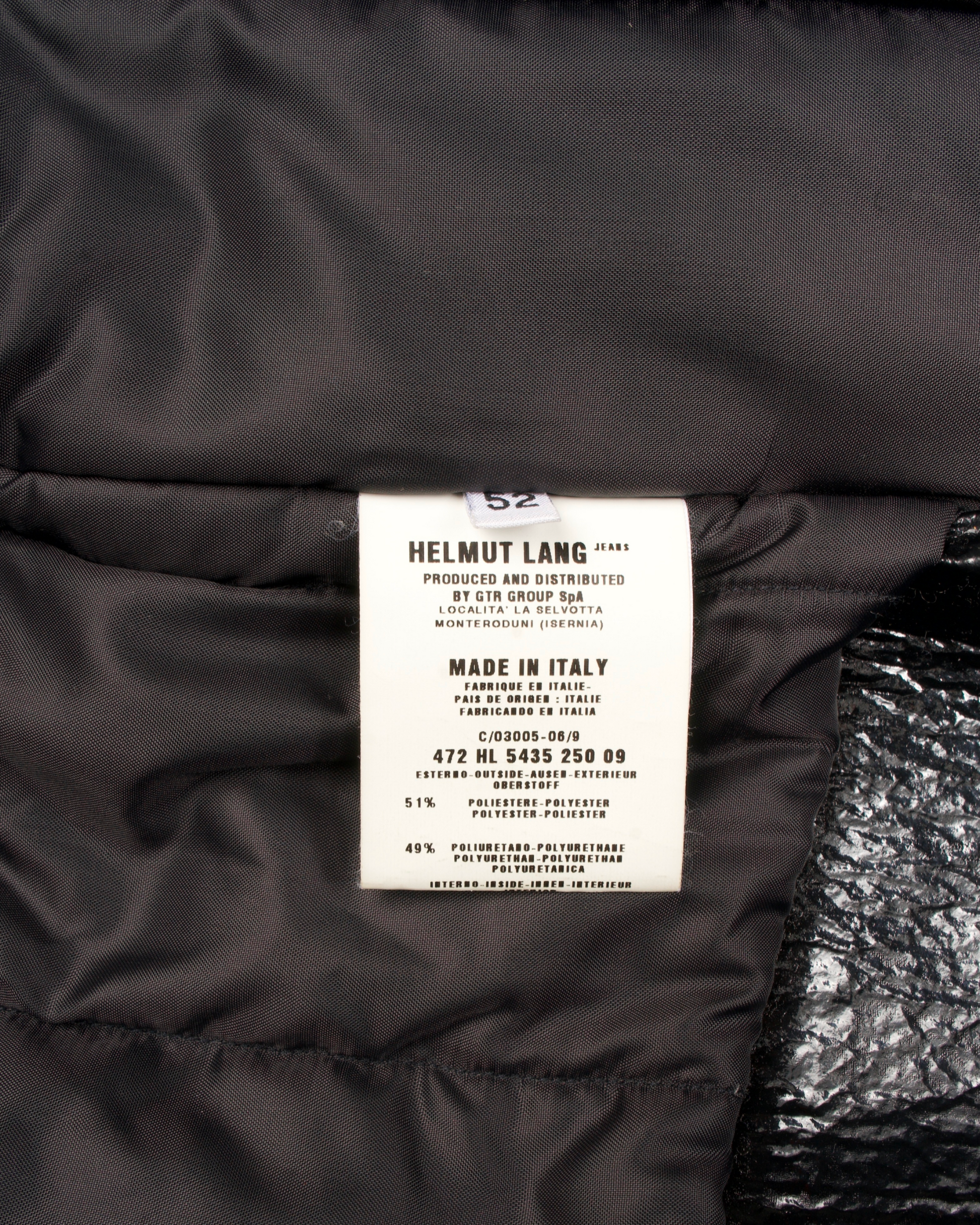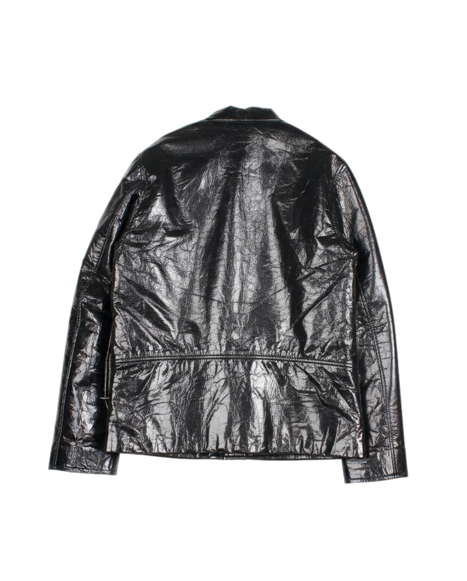 The Helmut Lang Polyurethane Biker Jacket reimagines the classic moto silhouette through a sleek, contemporary lens. Crafted from premium polyurethane with a supple, leather-like finish, the jacket embodies the brand’s minimalist edge and architectural precision. It features an asymmetrical front zip closure, snap-down lapels, and silver-tone hardware for a refined yet rebellious attitude. Subtle paneled construction and a tailored cut enhance its structured fit, while smooth lining ensures comfort and ease of layering. Both futuristic and timeless, this piece captures Helmut Lang’s signature fusion of utility and urban sophistication.