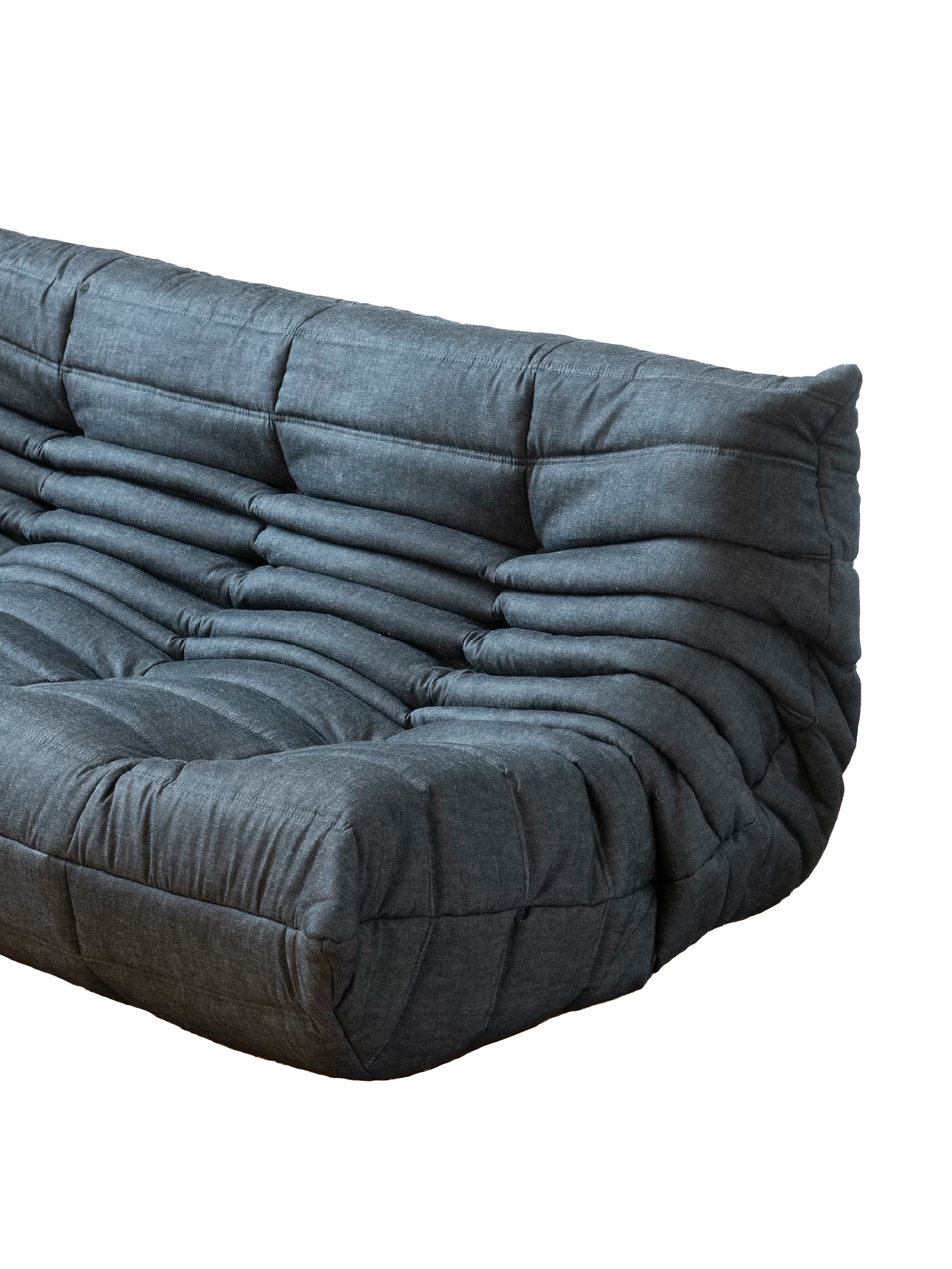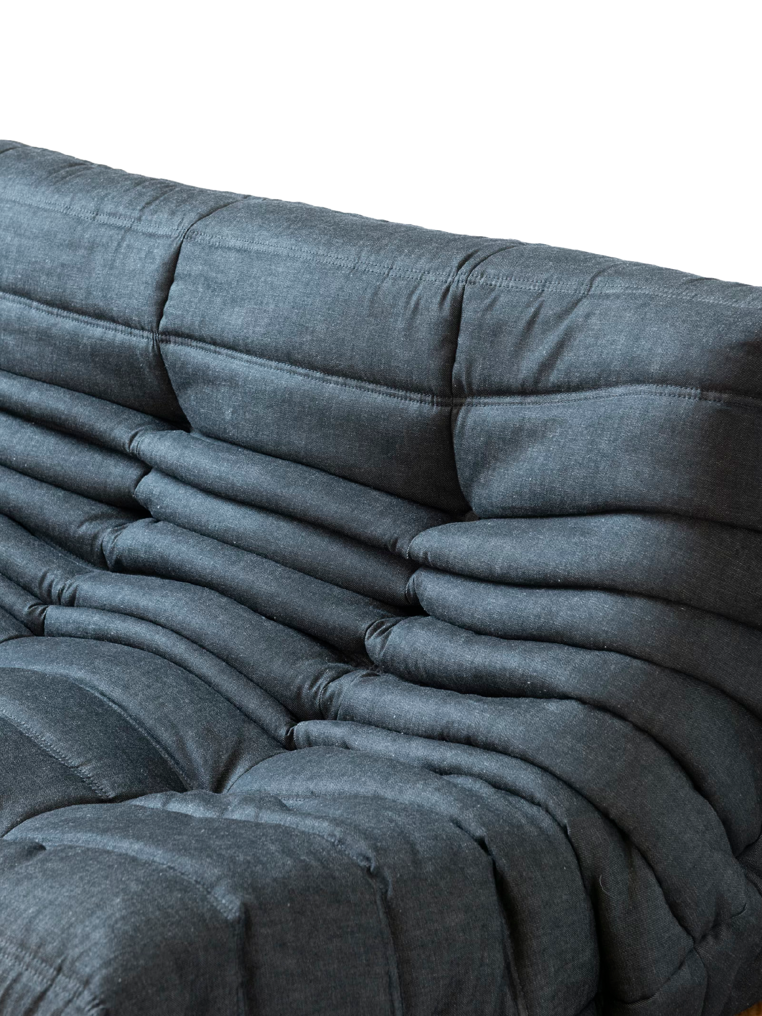 Iconic 3-seater Togo by Ligne Roset, designed by Michel Ducaroy in 1973. A timeless classic, beautifully designed with black denim fabric.