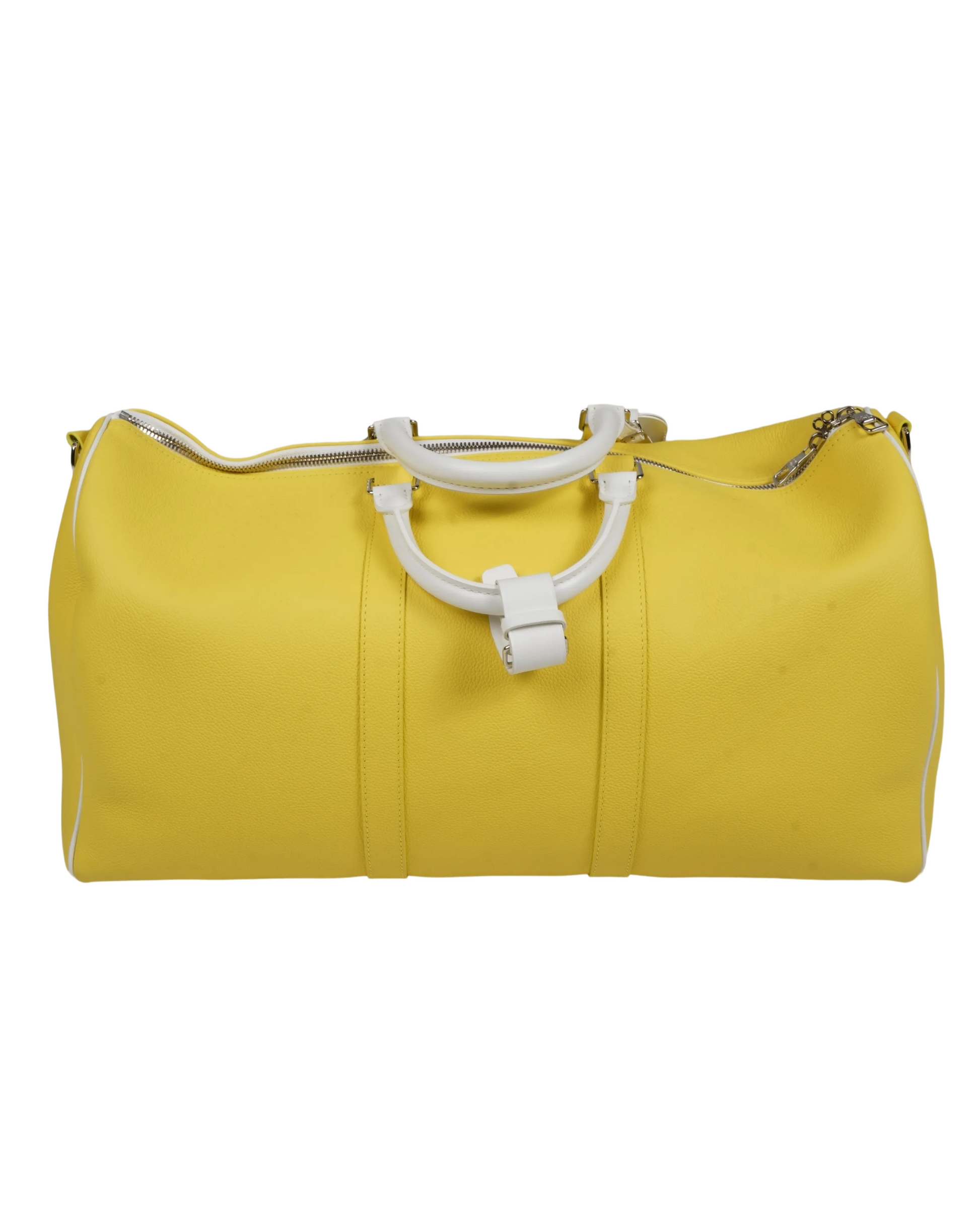 A vibrant reimagining of one of Louis Vuitton’s most iconic travel silhouettes, the Yellow Keepall stands out with bold color and unmistakable craftsmanship. Crafted from premium coated canvas or leather (depending on the edition), the bag features a rich, saturated yellow tone that adds modern energy to the classic Keepall design. The structured yet flexible build offers durability and ease of use, making it ideal for weekend trips, daily travel, or statement styling.