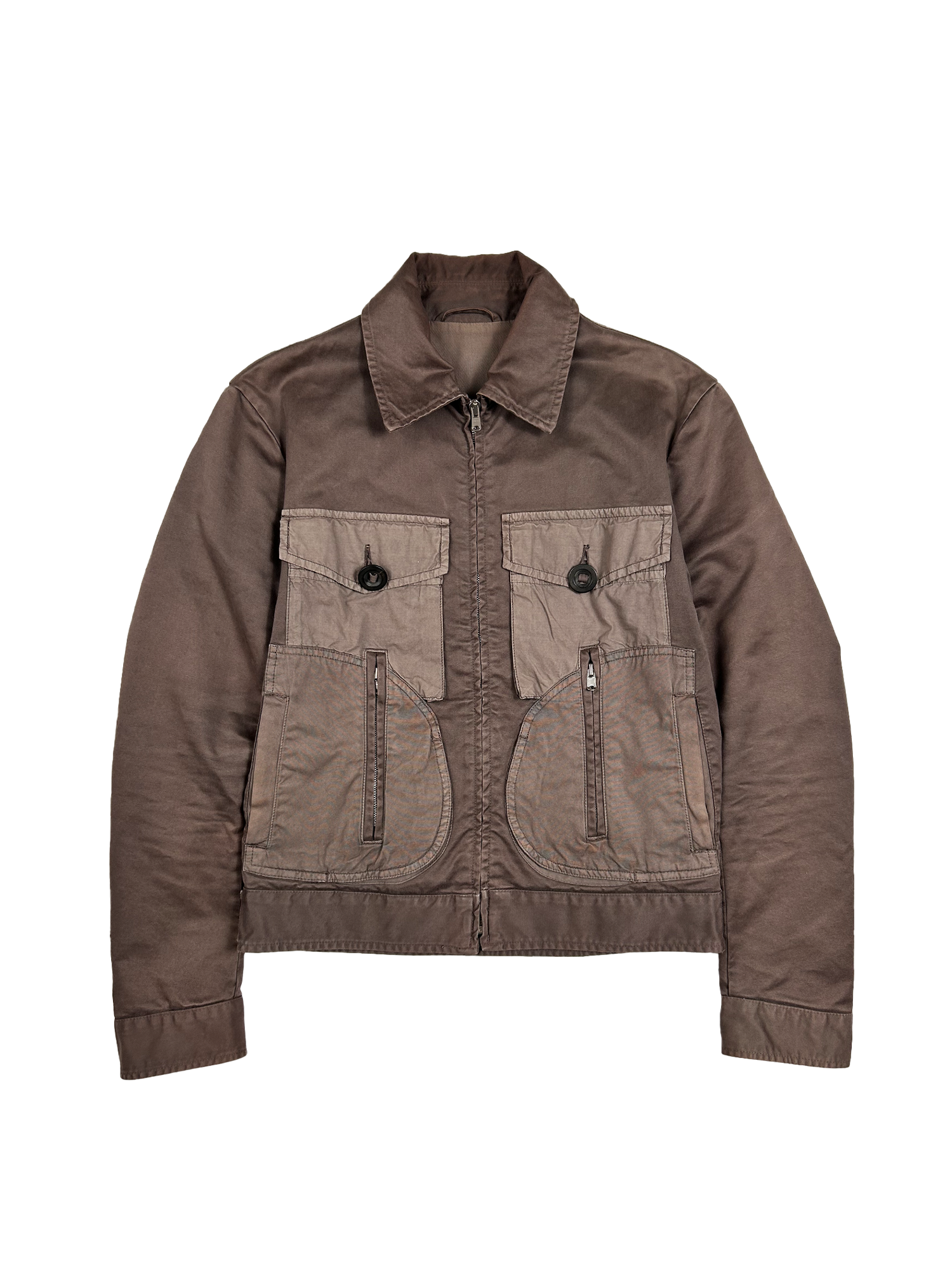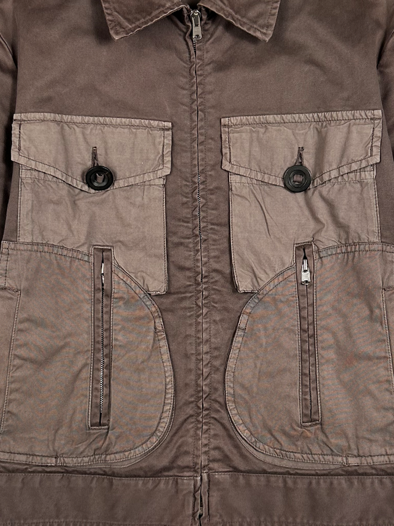 This jacket showcases four redesigned front pockets, each accented with a vintage mauve fade. It features RiRi zippers for the mid chain and pocket zippers, with a slightly cropped fit.