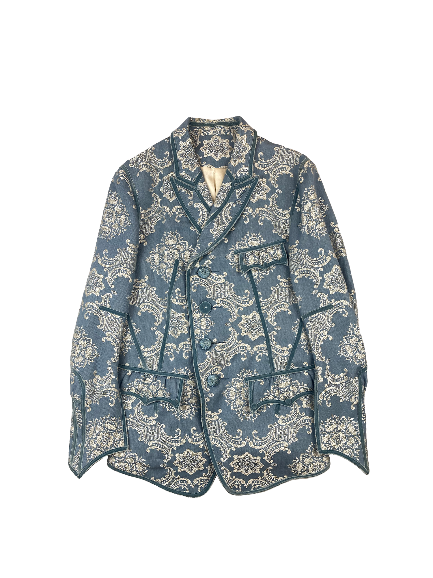 Prior to ending his tenure at Number (N)ine, Miyashita set out to leave a lasting impression on the world he had created. Closer Feeling would be the most expensive Number (N)ine collection to date, with it came a range of silk jackets, including this silk Western lapel held together by quilted paneling.
