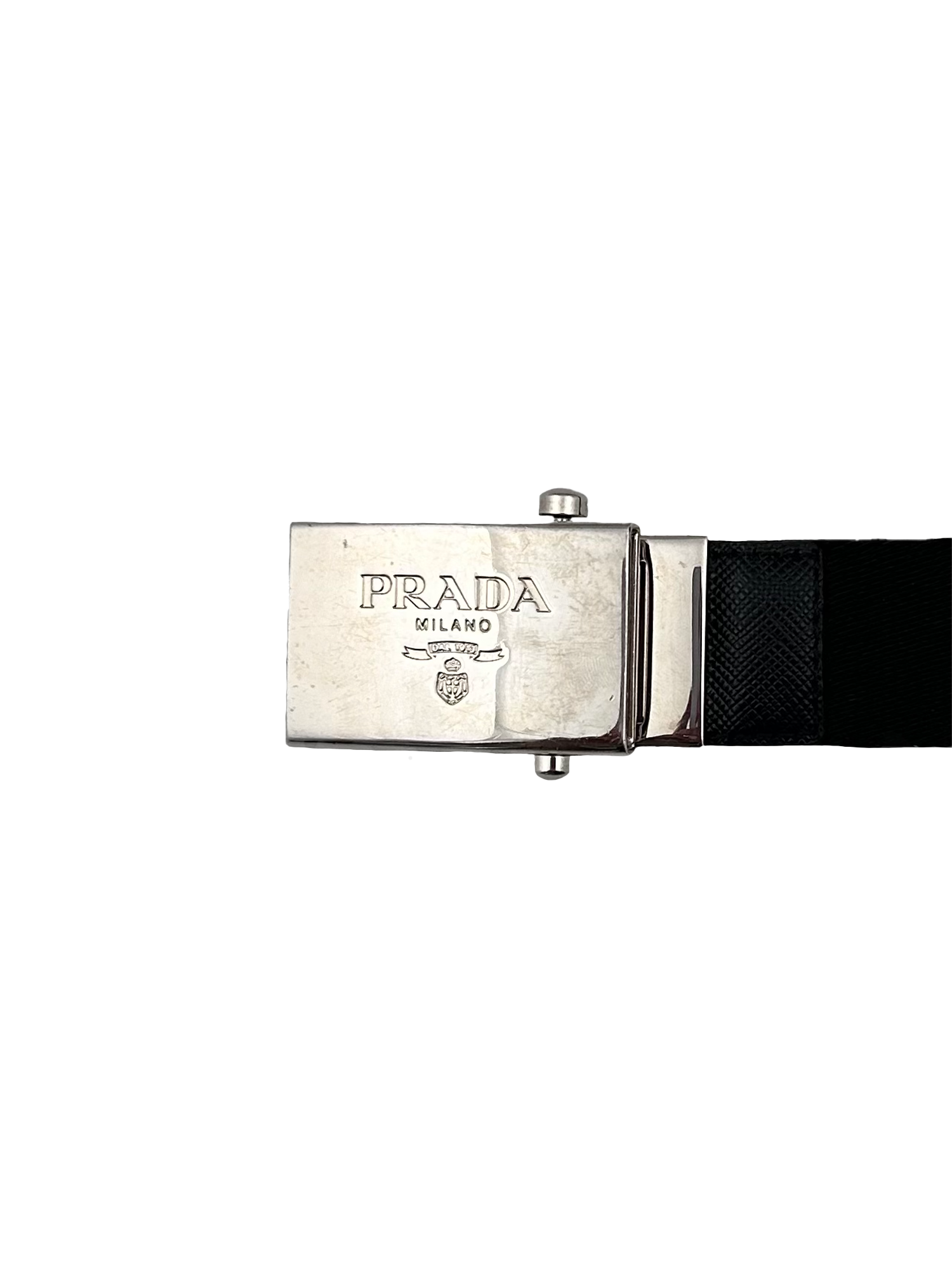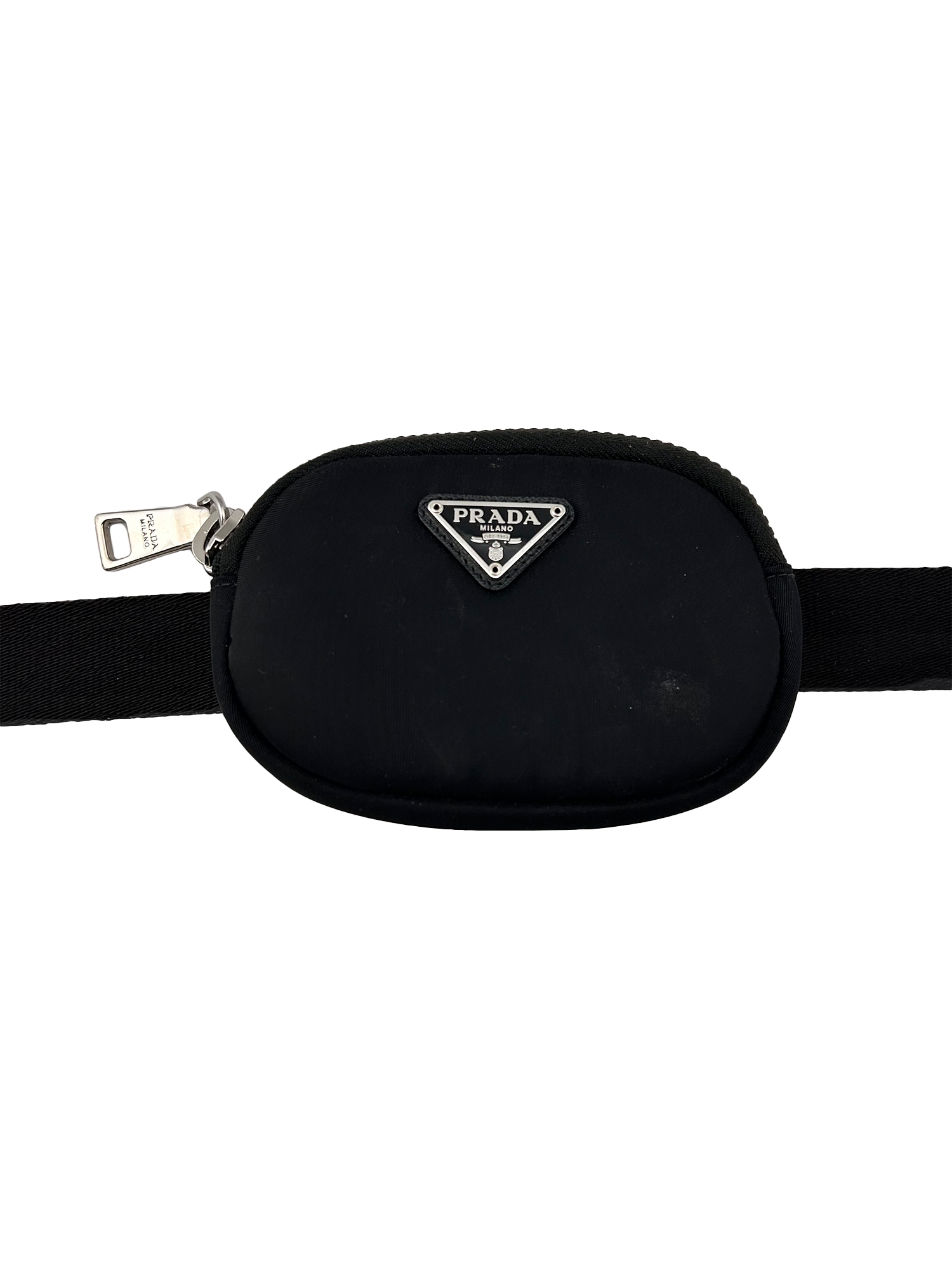 This belt features two stylish pouches made of nylon material, complemented by sleek silver hardware for a modern and functional accesory.