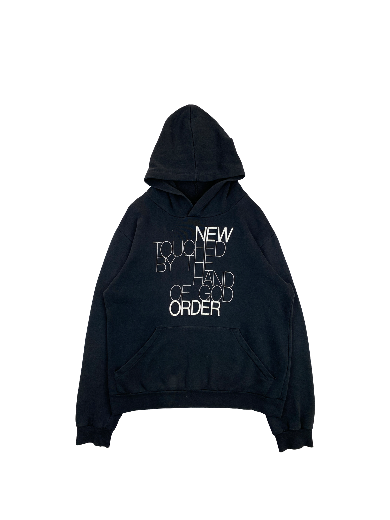 The body of work that derived from Raf’s AW03 was fruitful in seminal ideas that celebrated the works of Raf’s favorite musical groups, Joy Division and New Order. The Touched by the Hand of God hoodie was an ode the New Order’s single from 1987 that bared the same name, done in the now infamous Helvetica font.