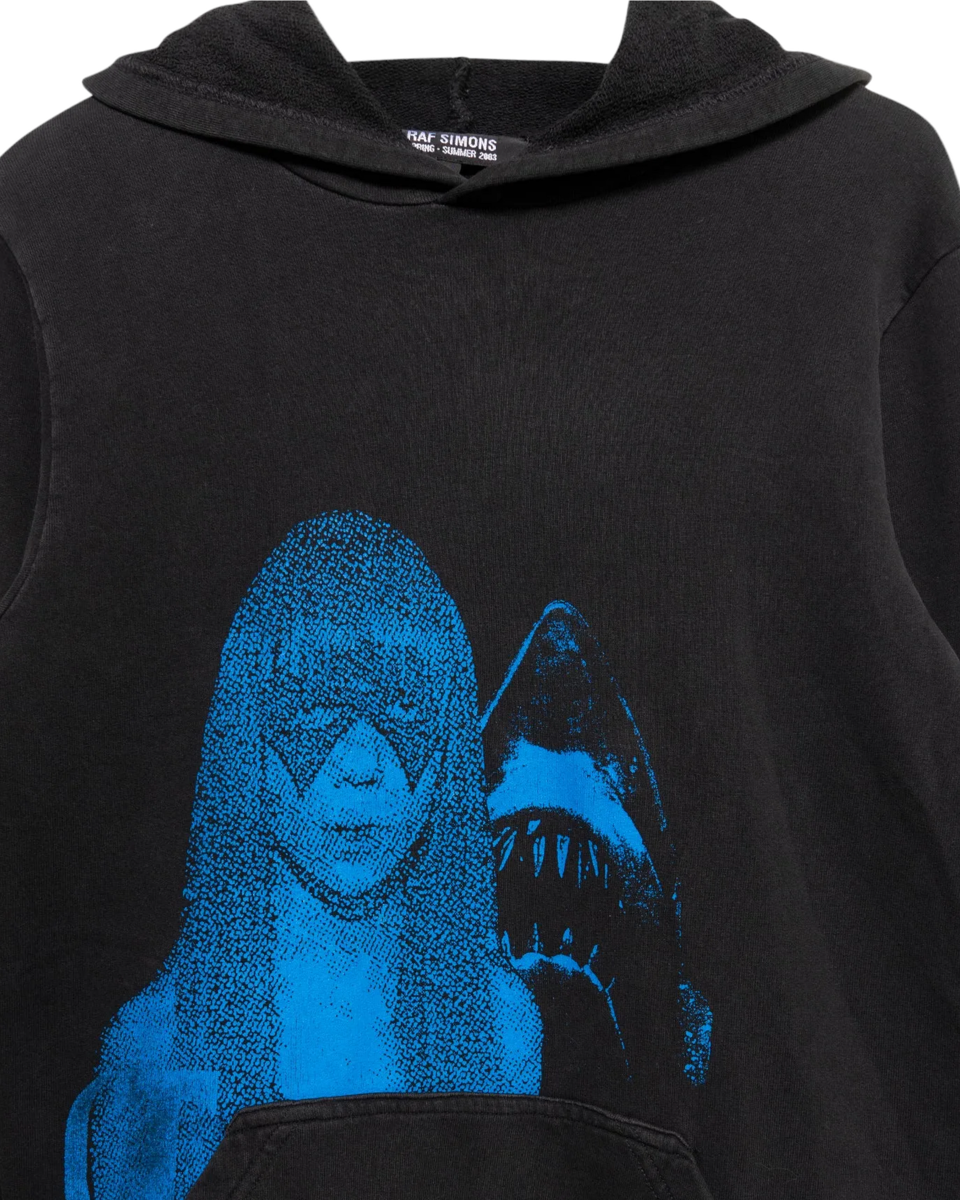 The Raf Simons SS2003 Penelope Hoodie is an iconic archival piece from one of the designer’s most influential collections. Released during the Spring/Summer 2003 season, the hoodie reflects Raf Simons’ signature exploration of youth culture, emotion, and minimalism. Featuring the distinctive Penelope graphic, the design blends vulnerability and intimacy with a raw, understated aesthetic that defined the era.