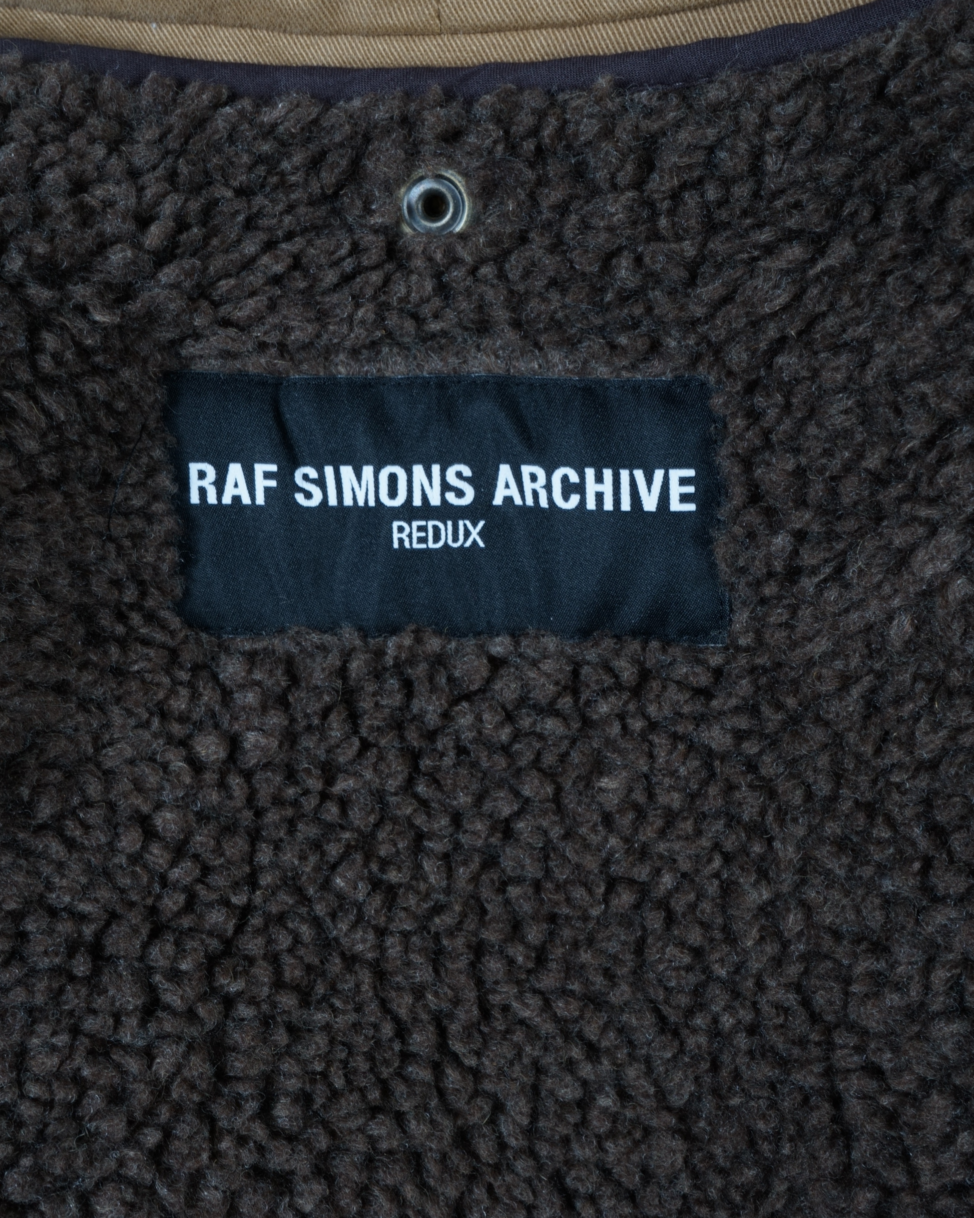 Reissued as part of Raf Simons’ Redux program—an ongoing celebration of his most influential archival designs—the New Order Parka revives one of the most iconic outerwear pieces from his early 2000s collections. Rooted in youth culture, subcultural graphics, and the designer’s signature oversized proportions, this parka captures the raw, emotional energy that defined Simons’ formative years.