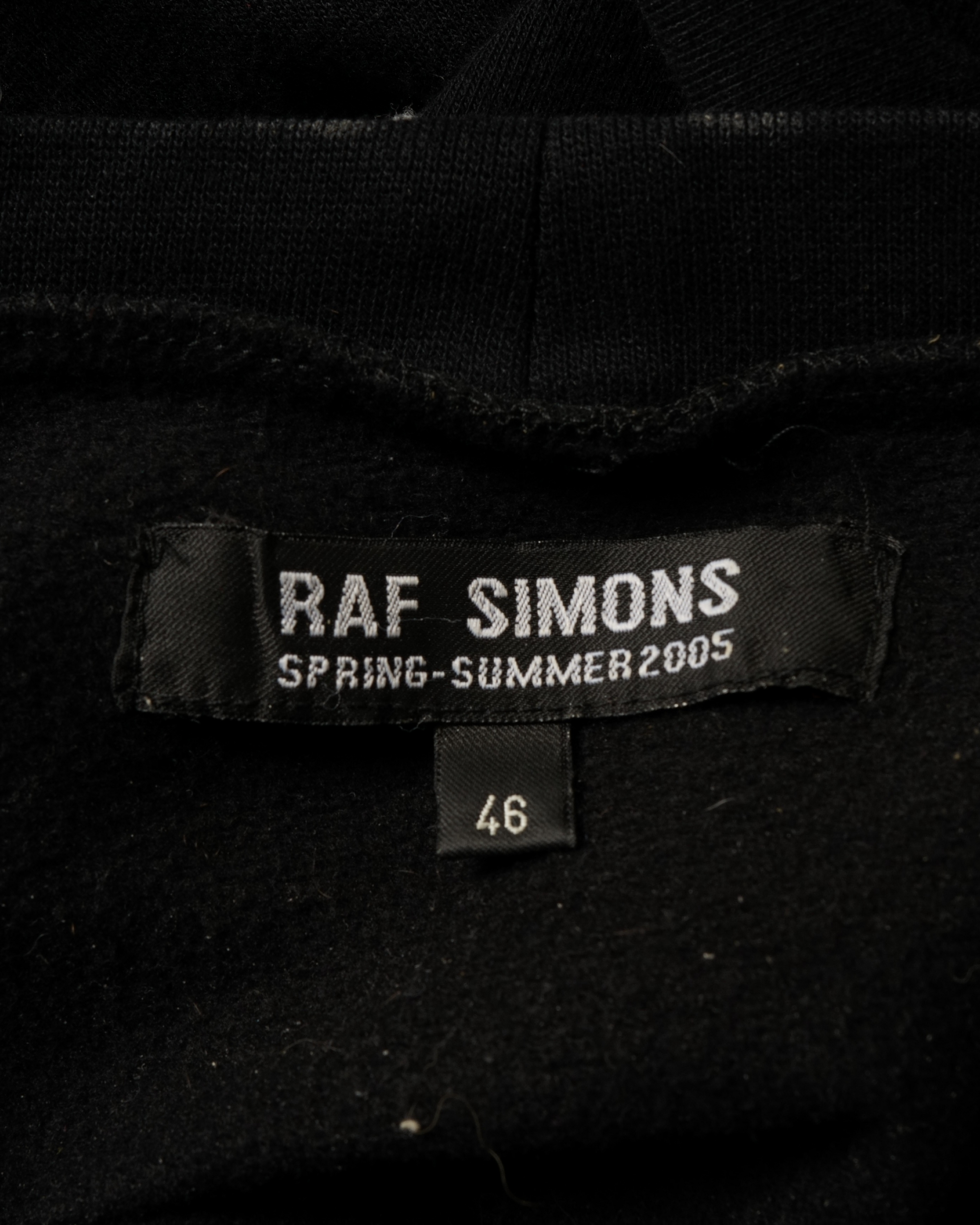 The Raf Simons SS05 History of My World Patched Crewneck stands as one of the most coveted knitwear pieces from Simons’ early-2000s era, showcasing his signature fusion of youth culture, introspection, and subversive design. Crafted from a soft yet structured cotton knit, the crewneck features a relaxed, slightly elongated silhouette that embodies the brand’s iconic proportional play.