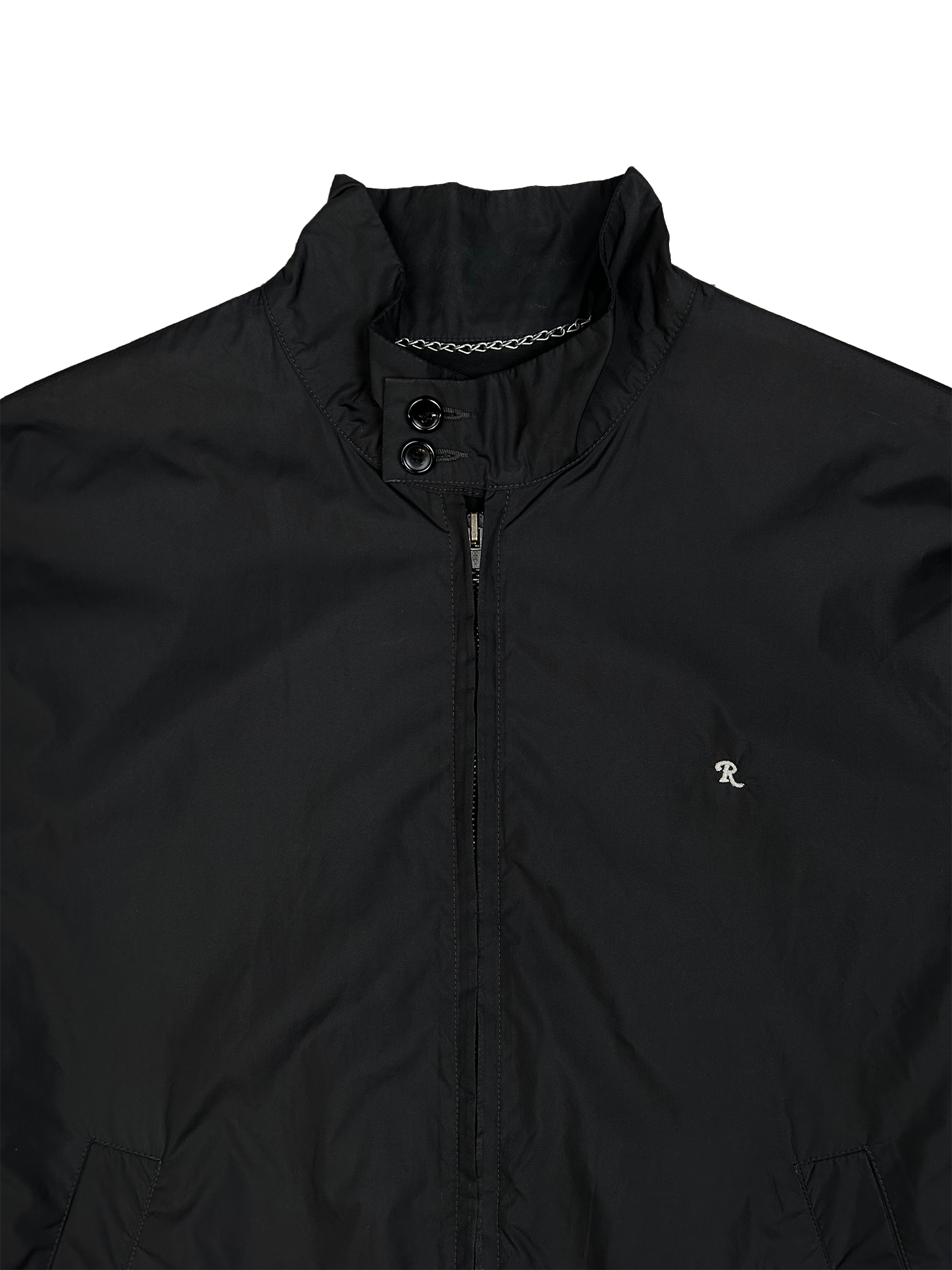 This jacket features an embroidered R logo, two slanted welt pockets, and a neck collar with button closure. It also has a garterized hip band for comfort and an Opti zipper for smooth operation.