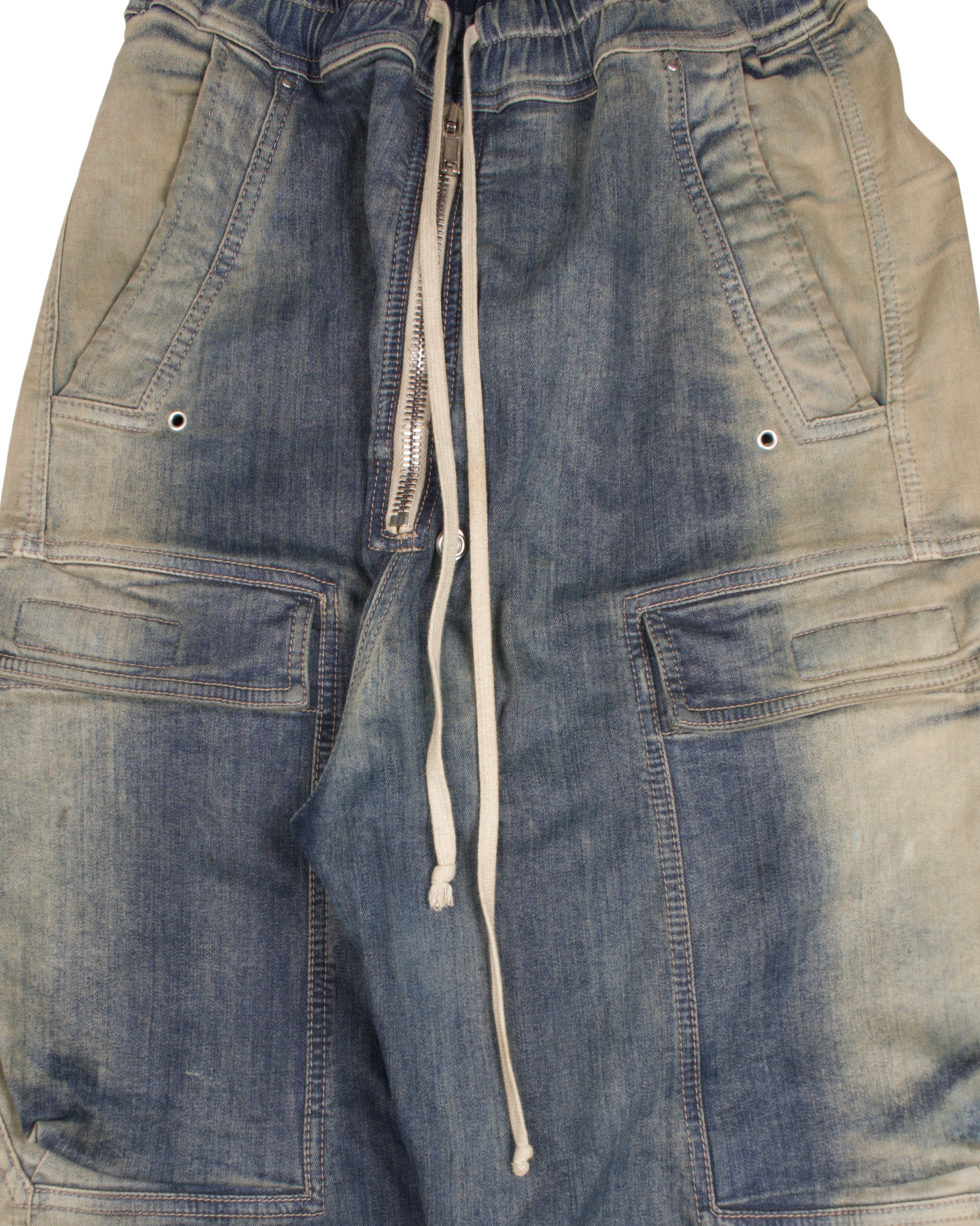 The Rick Owens Double Cargo Jumbo Bela Pants reinterpret utilitarian design through the brand’s signature sculptural lens. These oversized trousers feature a voluminous, wide-leg silhouette that drapes with dramatic movement. Multiple double-layered cargo pockets and exposed zippers accentuate their functional yet avant-garde character, while the dropped crotch and elasticized waistband ensure a relaxed, comfortable fit