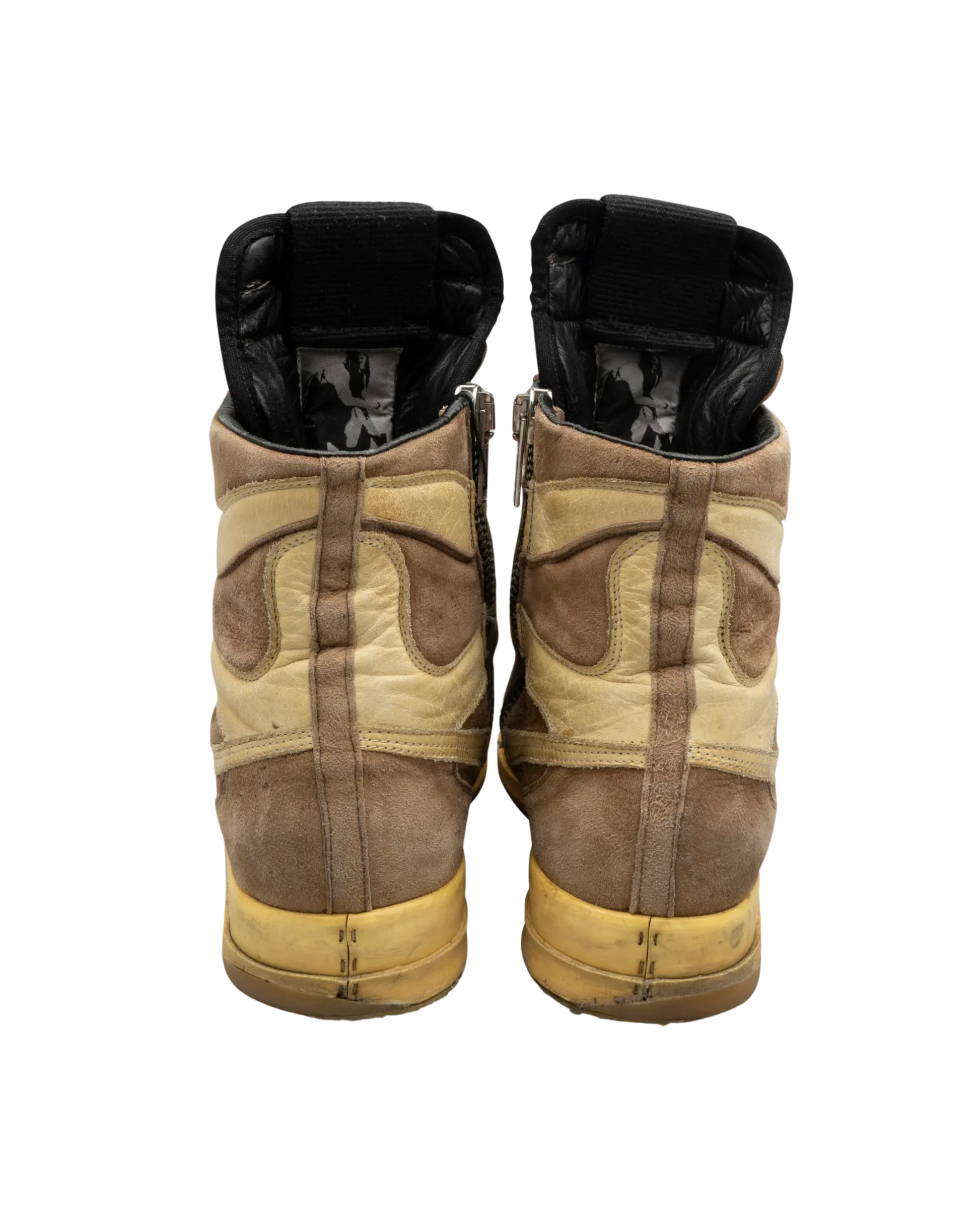 A bold statement in avant-garde footwear, the Rick Owens Dunk Sneakers fuse sculptural design with streetwear functionality. Characterized by their oversized silhouette, thick platform sole, and exaggerated tongue, these sneakers exemplify Rick Owens’ signature “Gothic-grunge” aesthetic.