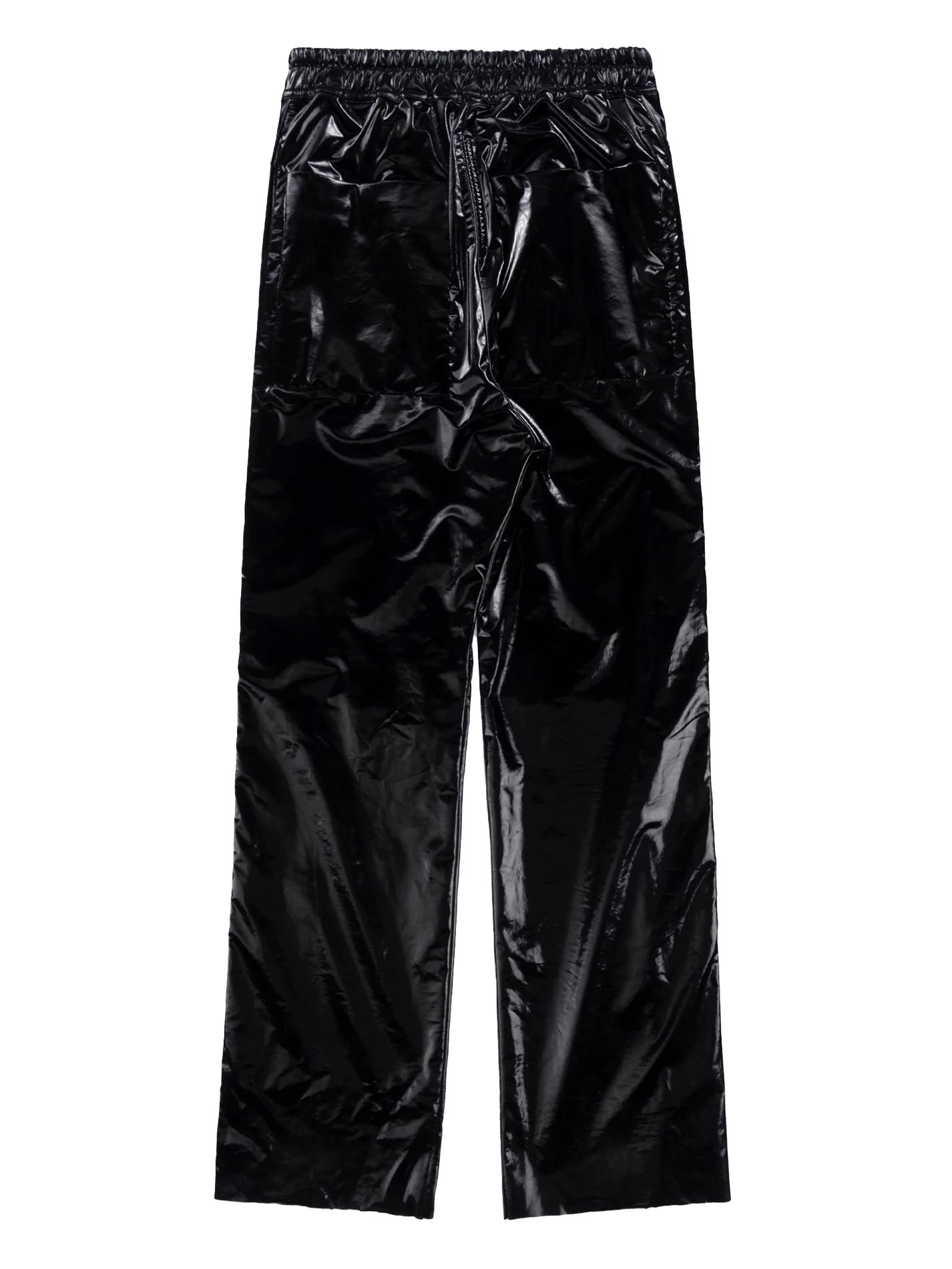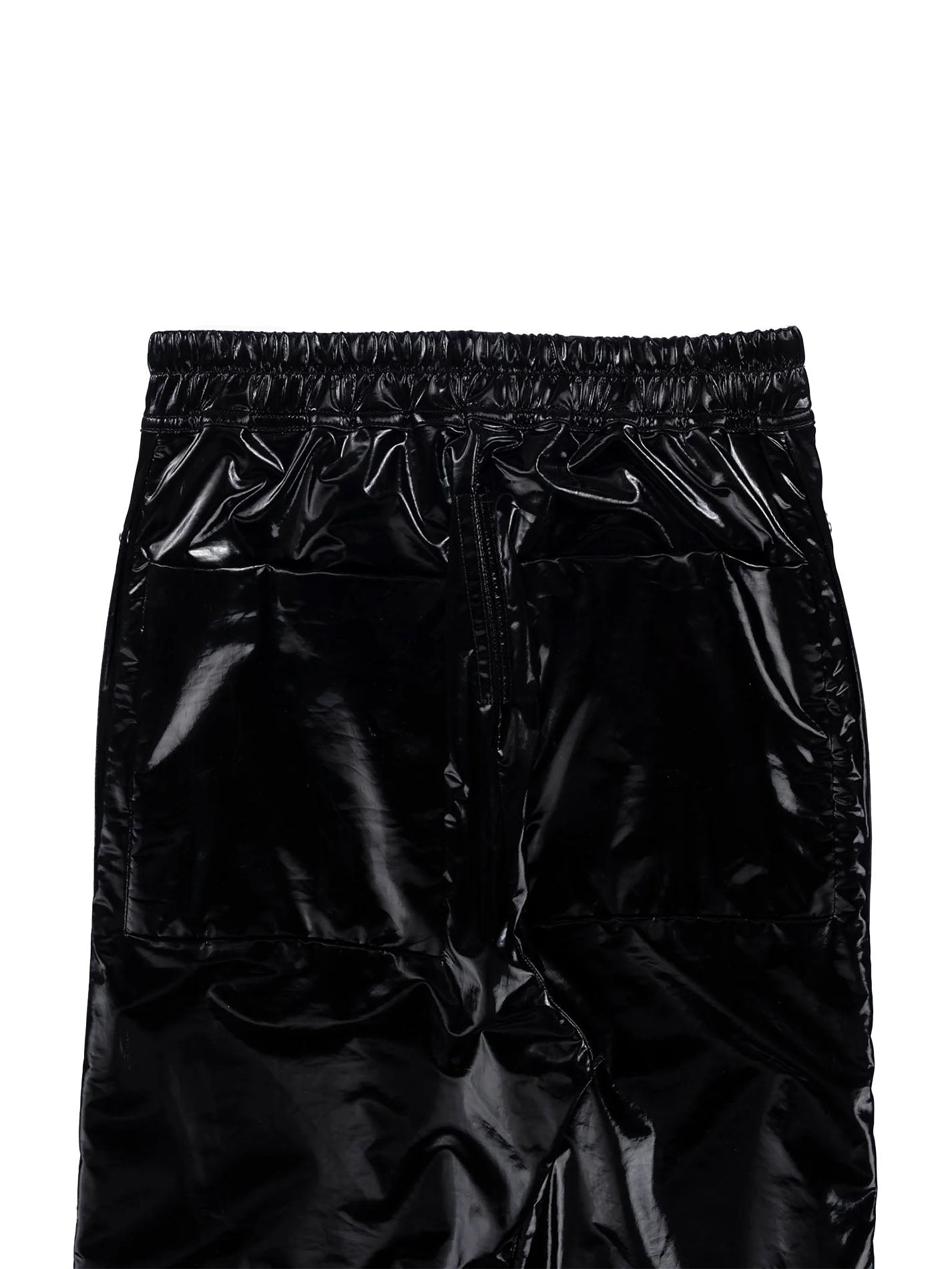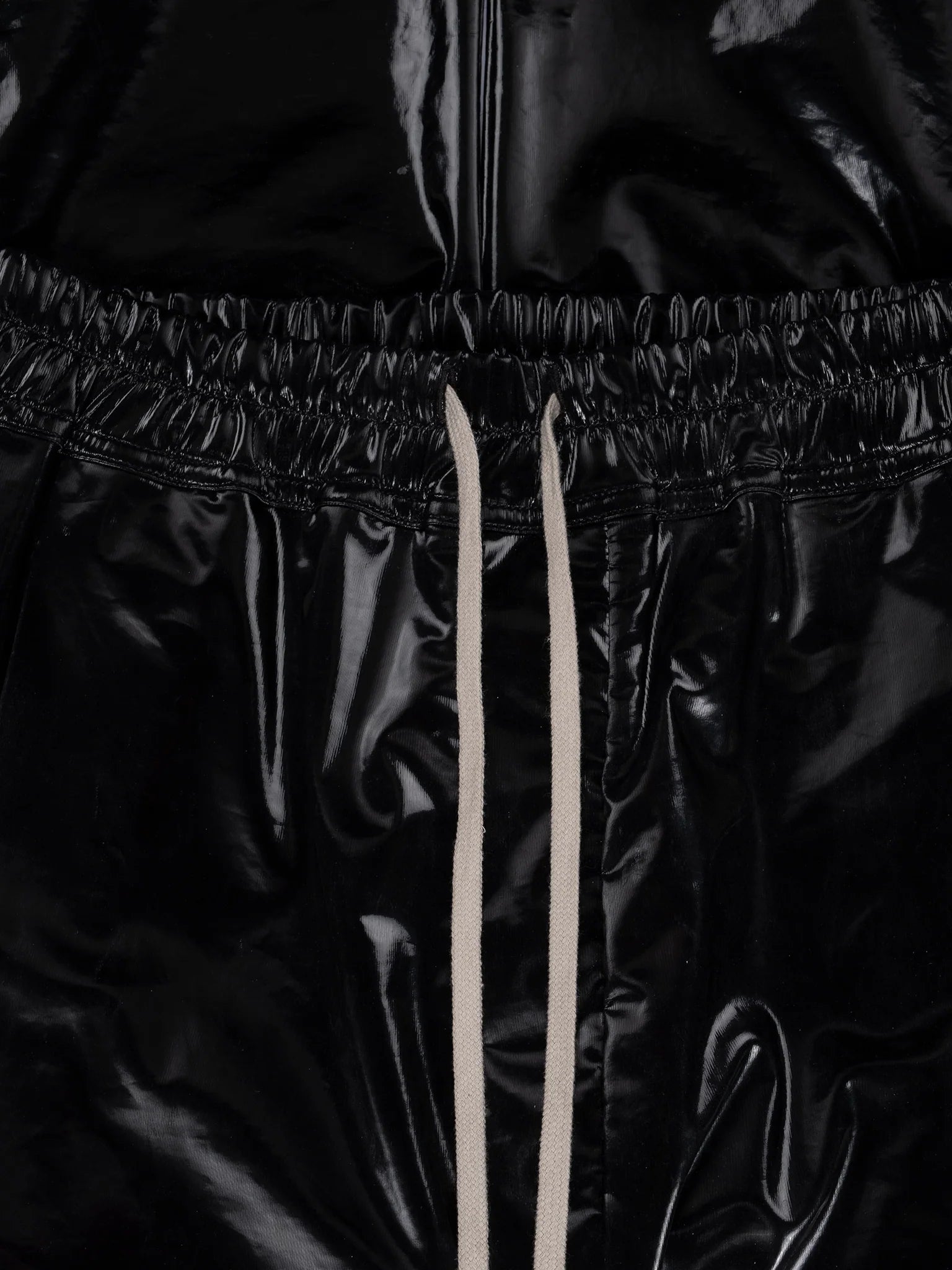 A pair of rip away Rick Owens pusher pants in a shiny synthetic fabric to go real crazy in the light.