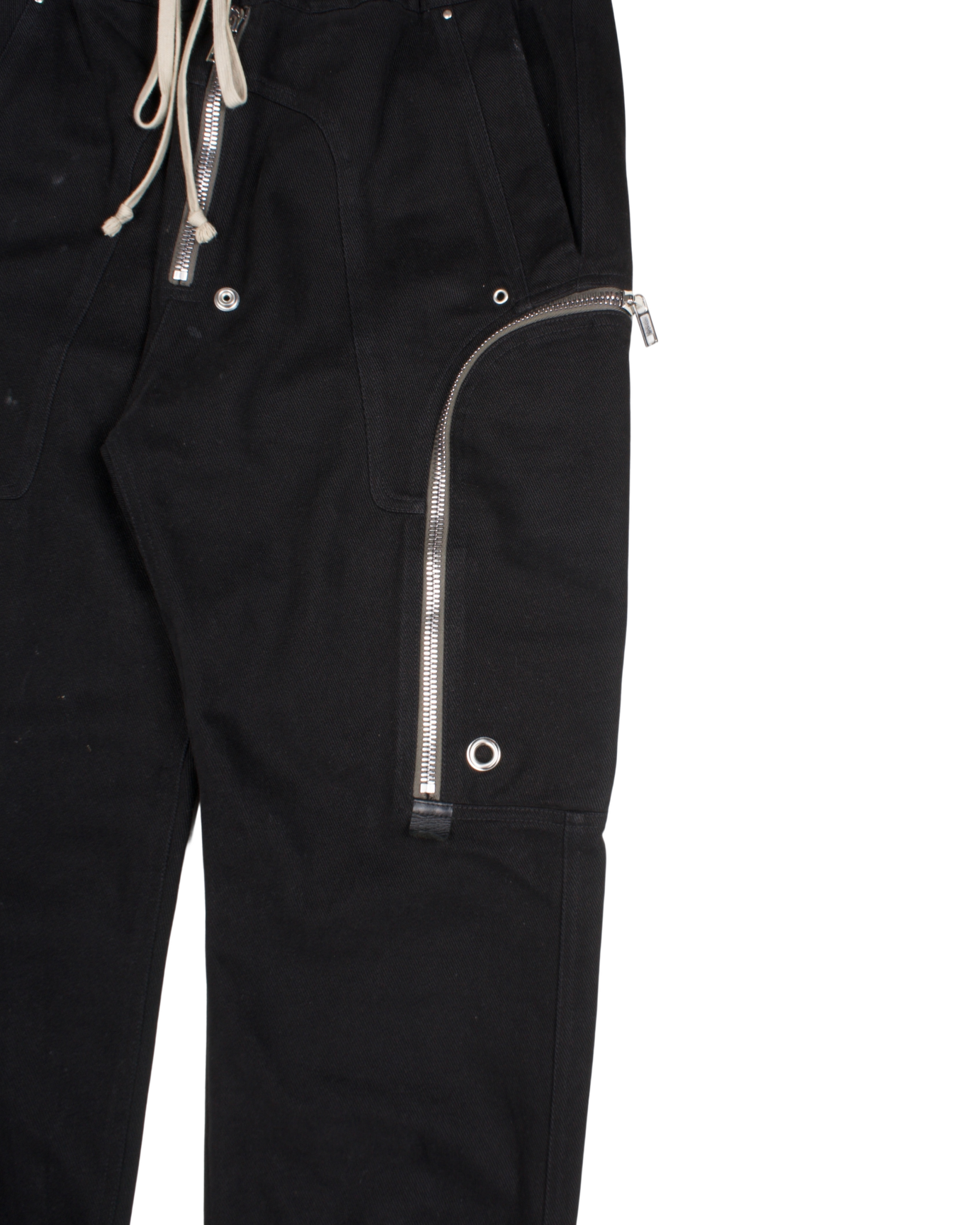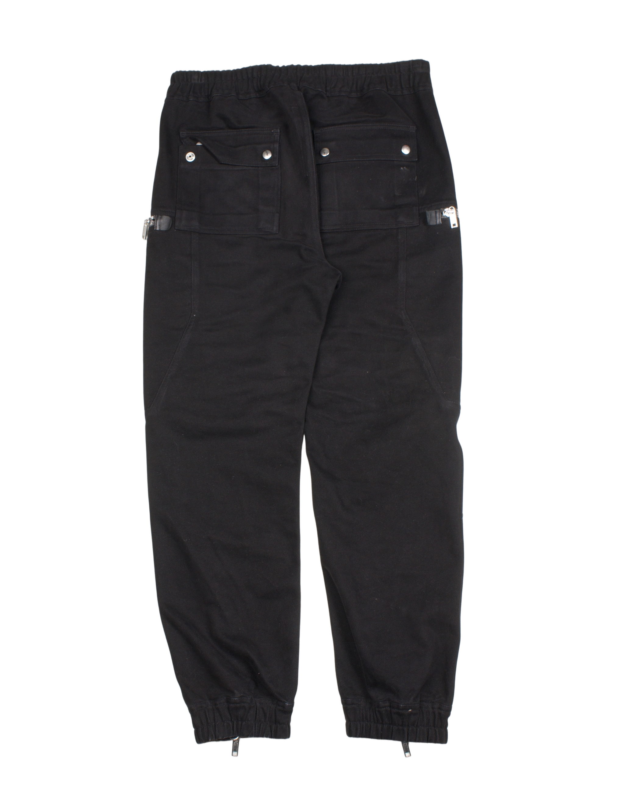 These cargo pants lean into Rick Owens’ juxtaposition of utility and avant-garde tailoring. They feature a relaxed, cargo‐styled cut with an elasticized waistband with drawstring adjustment, allowing both comfort and customization. The leg tapers toward the cuff, finishing at elasticized hems that include zip vents — letting you adjust the ankle opening.