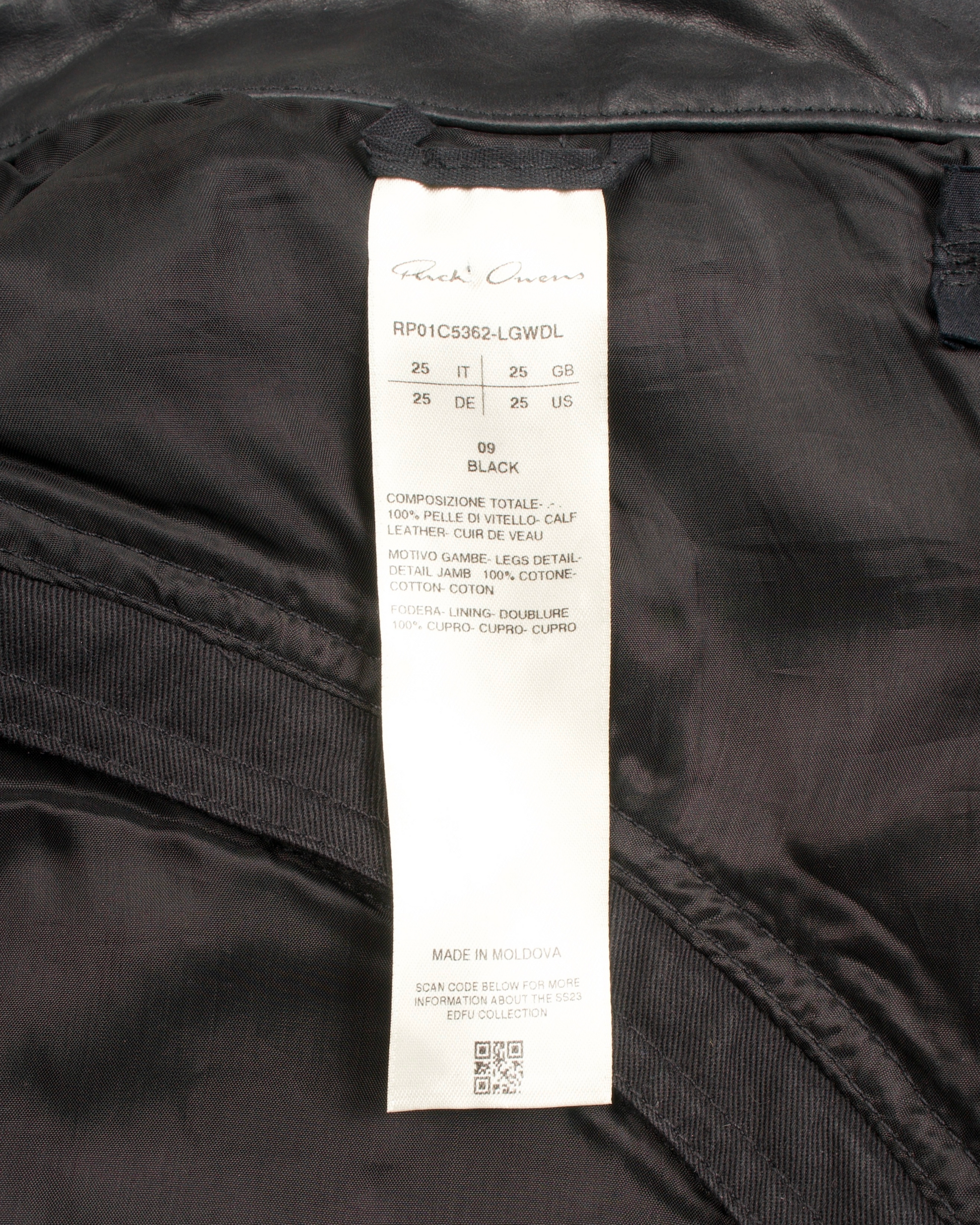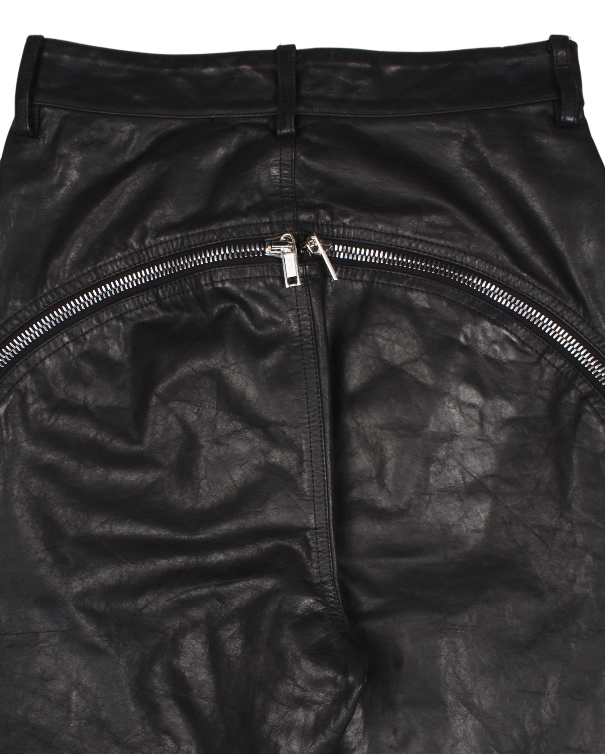 The Rick Owens Bolan Banana Zip Pants embody the designer’s avant-garde tailoring and subversive take on luxury. Crafted from premium stretch denim or cotton-blend fabric, these pants feature Rick Owens’ signature banana-shaped leg—a sculptural, curved silhouette that tapers toward the ankle for a distinct, architectural fit. Exposed metal zip closures along the sides add industrial edge, while a low-rise waist and elongated proportions emphasize the brand’s modern, androgynous aesthetic. Finished with tonal stitching and minimalist detailing, the Bolan Banana Zip Pants balance structure and movement, capturing Rick Owens’ vision of refined rebellion and futuristic design.