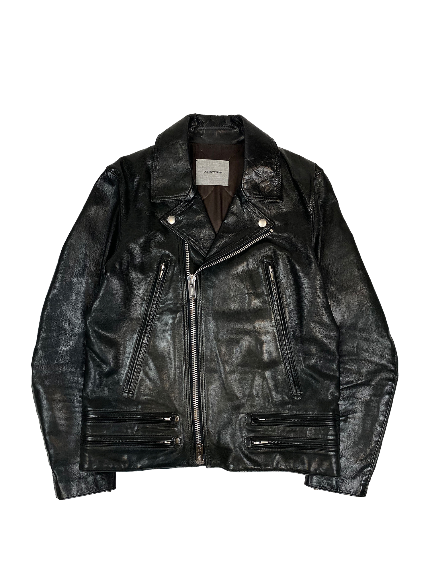 Rider style jacket featuring a ribcage embossed leather motif on the back. Supple calf leather throughout with a cupro lining.