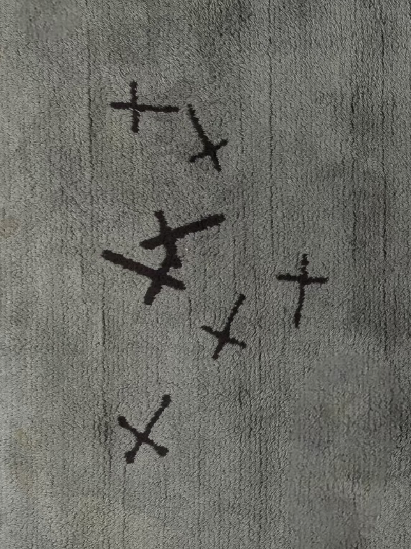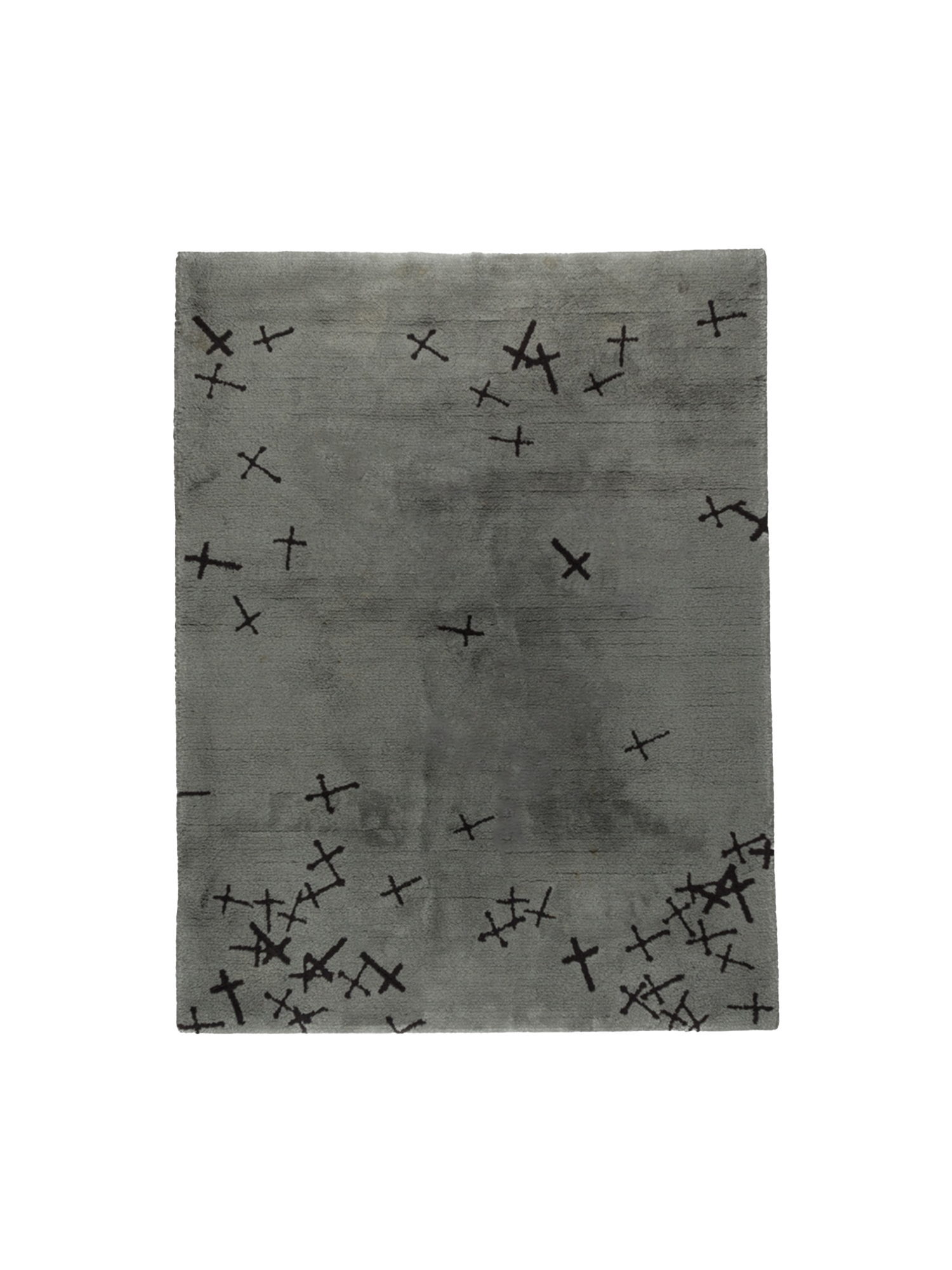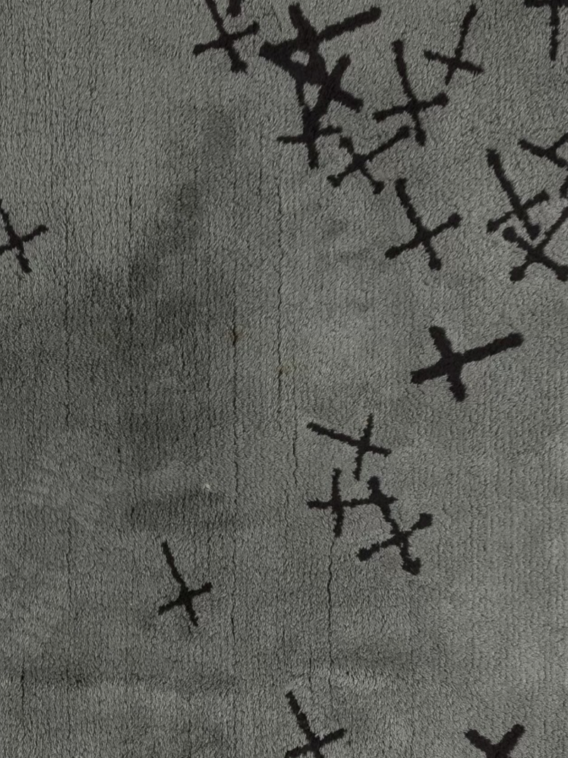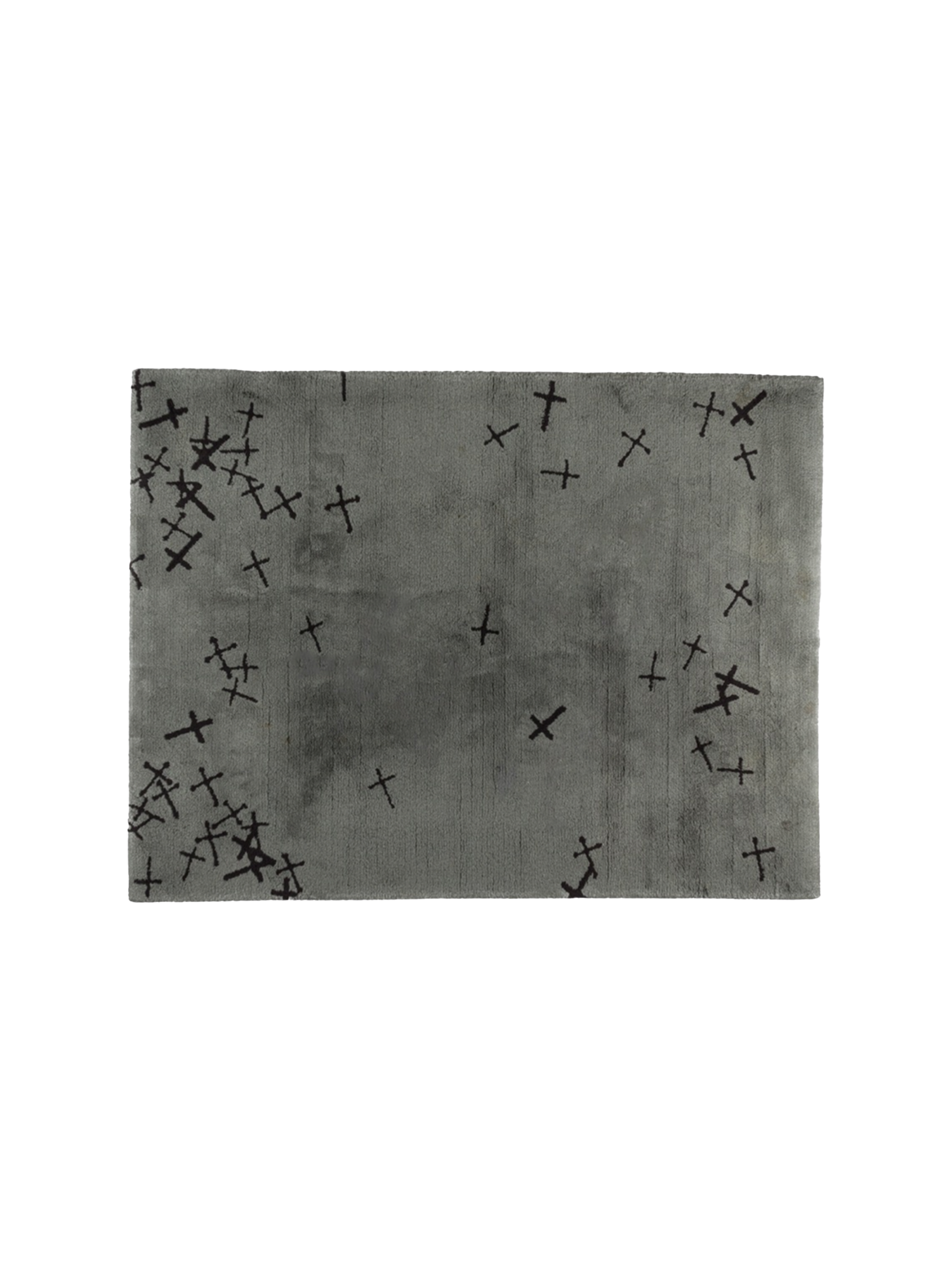 In cohesion with the prevalent cross motifs incorporated in the Witch’s Cell Division collection, the rug features an array of crosses throughout its short pile construction. A rare collectible with only fifty produced since its inception.
