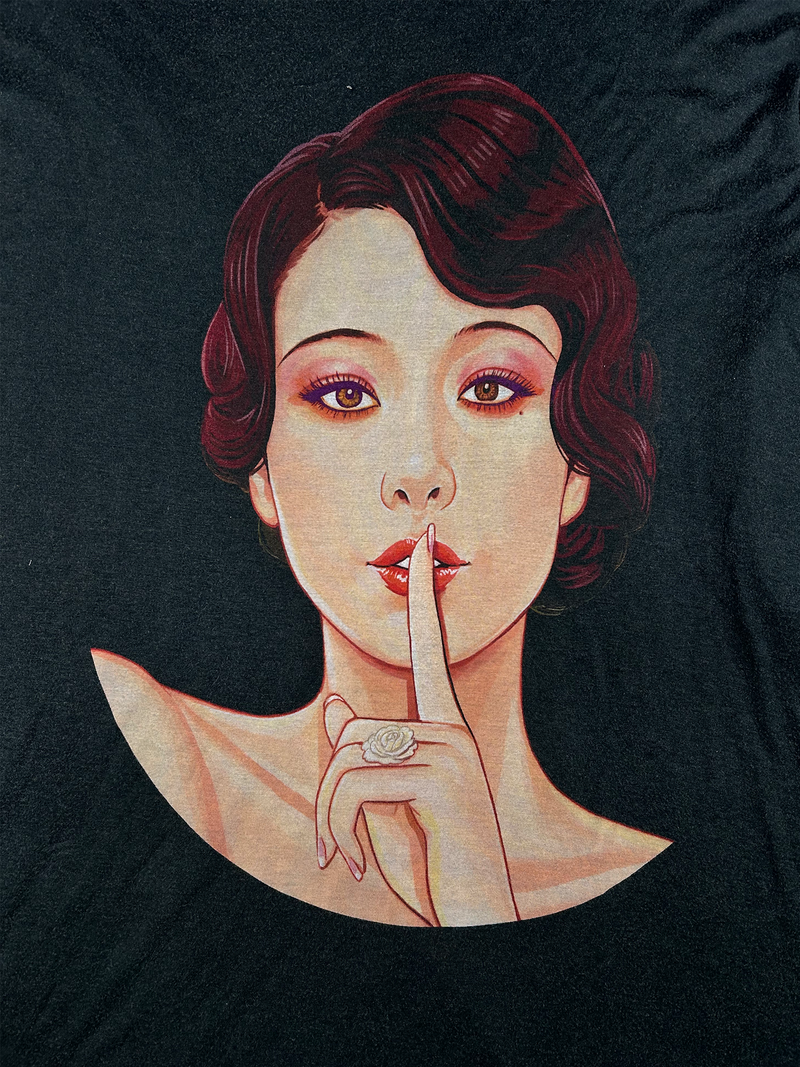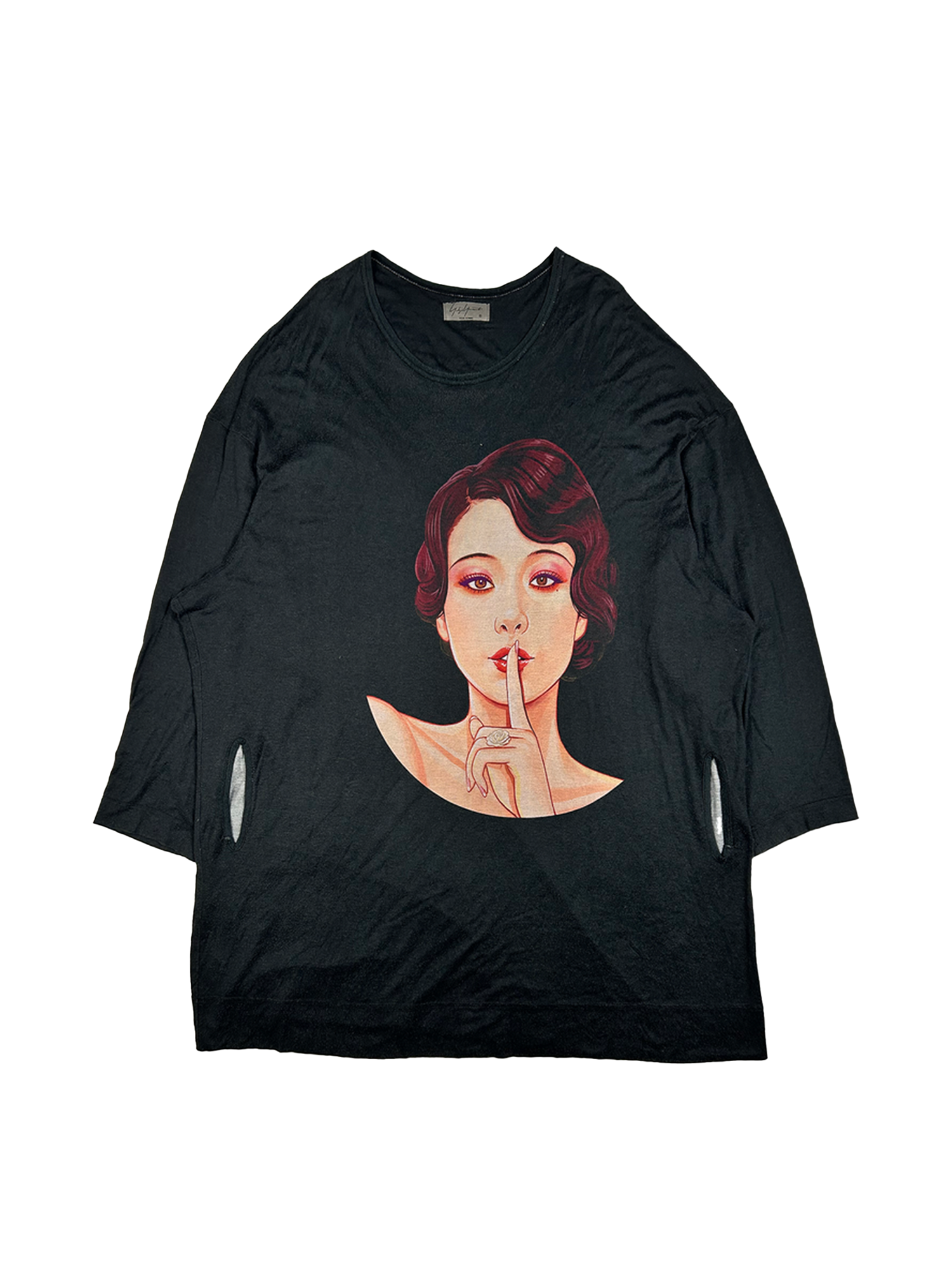 Oversized silk shirt from Yohji Yamamoto Pour Homme's Spring/Summer 2018 collection featuring a prominent print of actress Eiko Koike on the front.